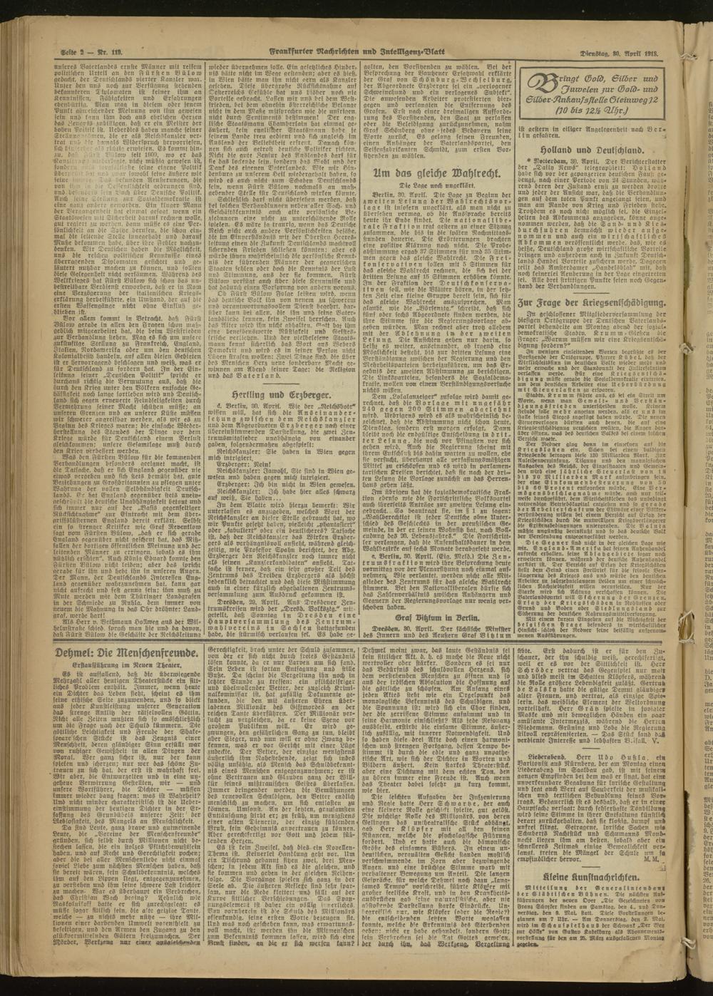 30.04.1918 Abend-Ausgabe = Nr. 119