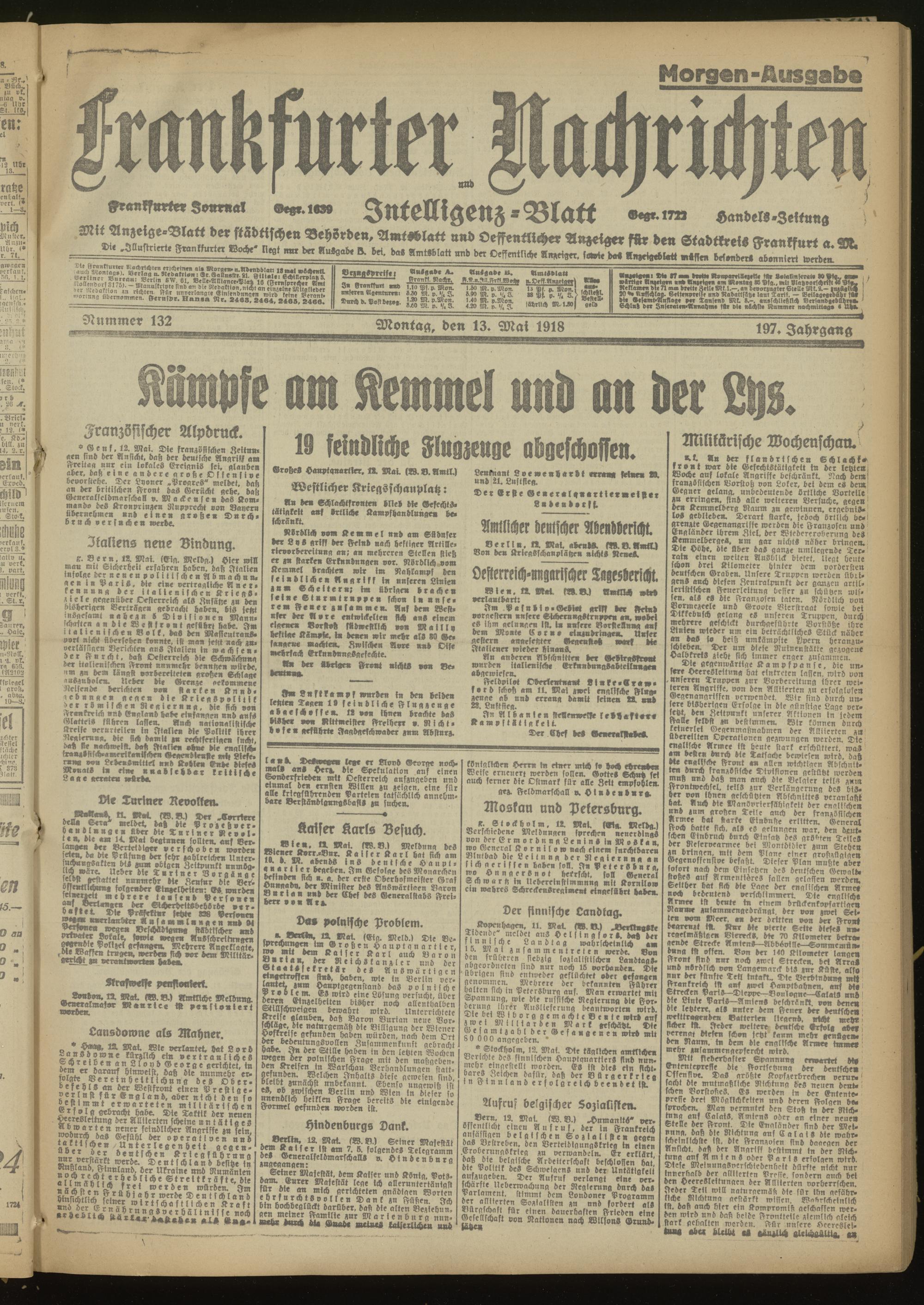 13.05.1918 Morgen-Ausgabe = Nr. 132