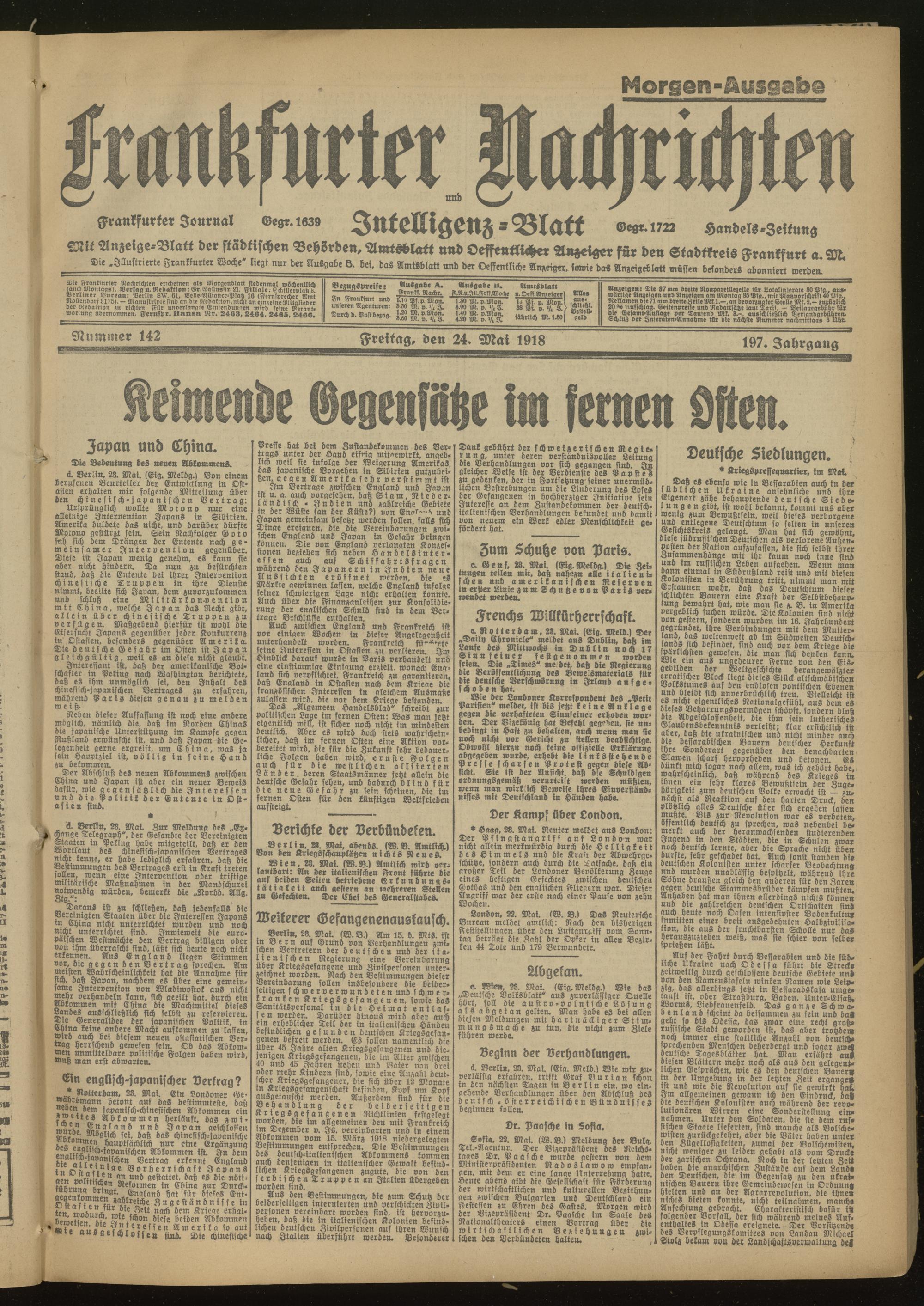 24.05.1918 Morgen-Ausgabe = Nr. 142