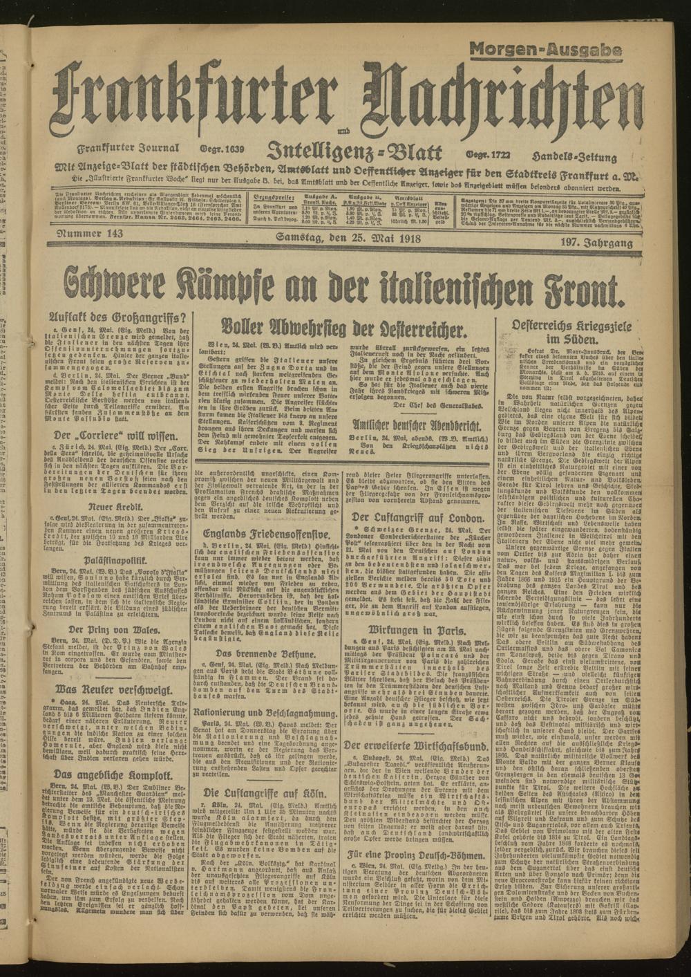25.05.1918 Morgen-Ausgabe = Nr. 143