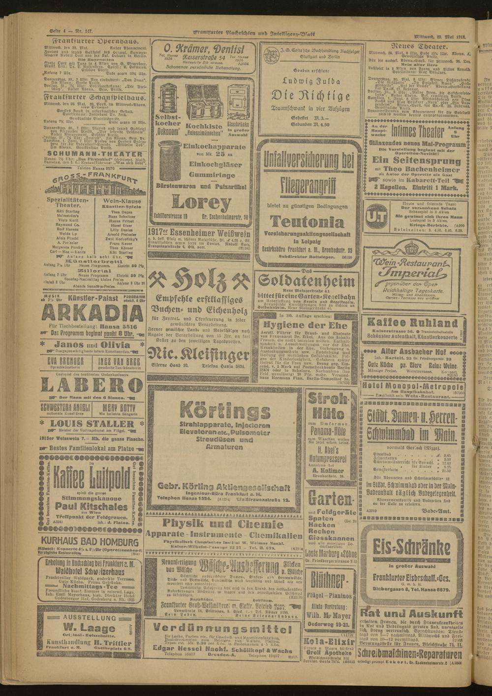 Frankfurter Nachrichten und Intelligenzblatt. 1914-1918