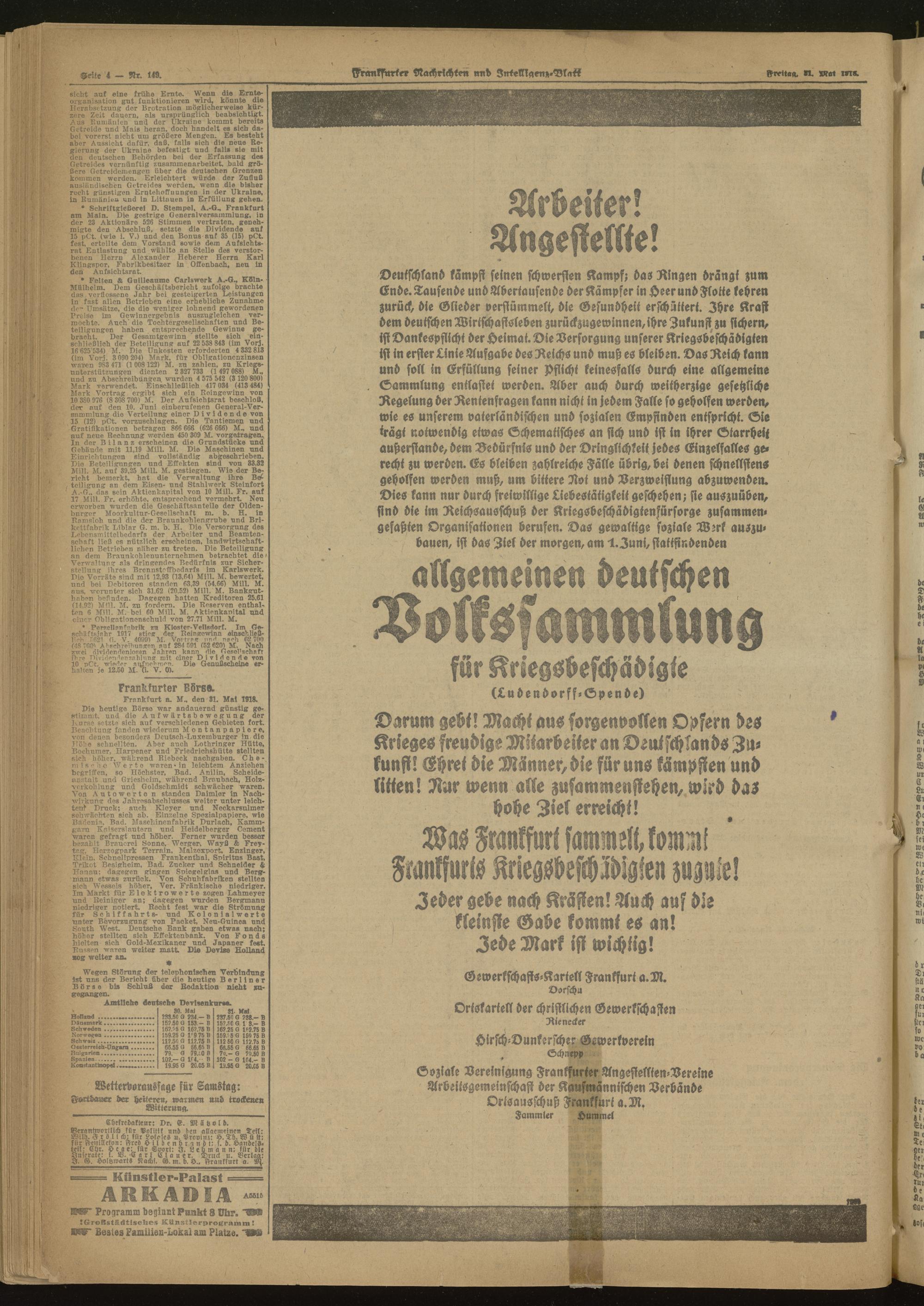 31.05.1918 Abend-Ausgabe = Nr. 149