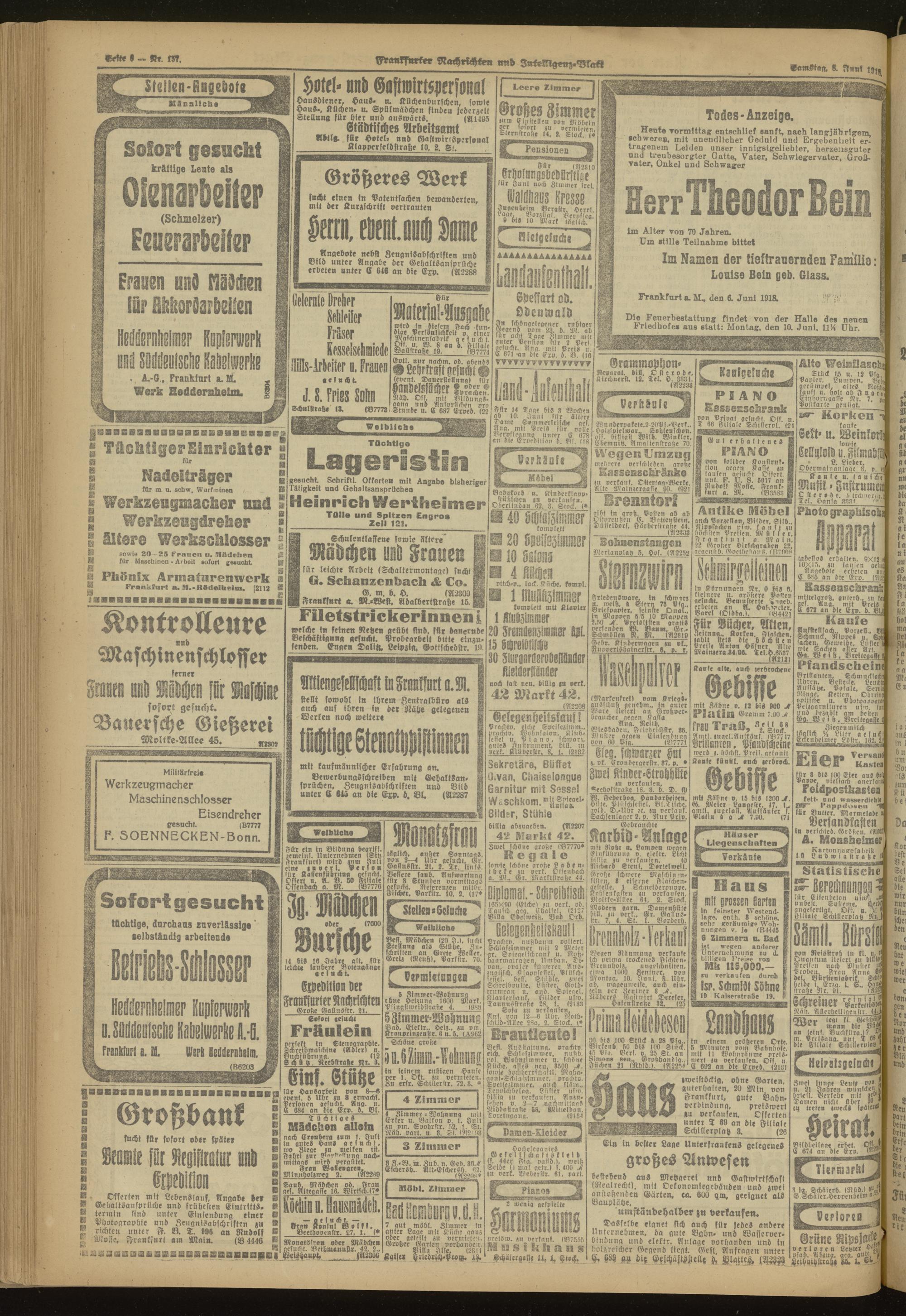 08.06.1918 Morgen-Ausgabe = Nr. 157