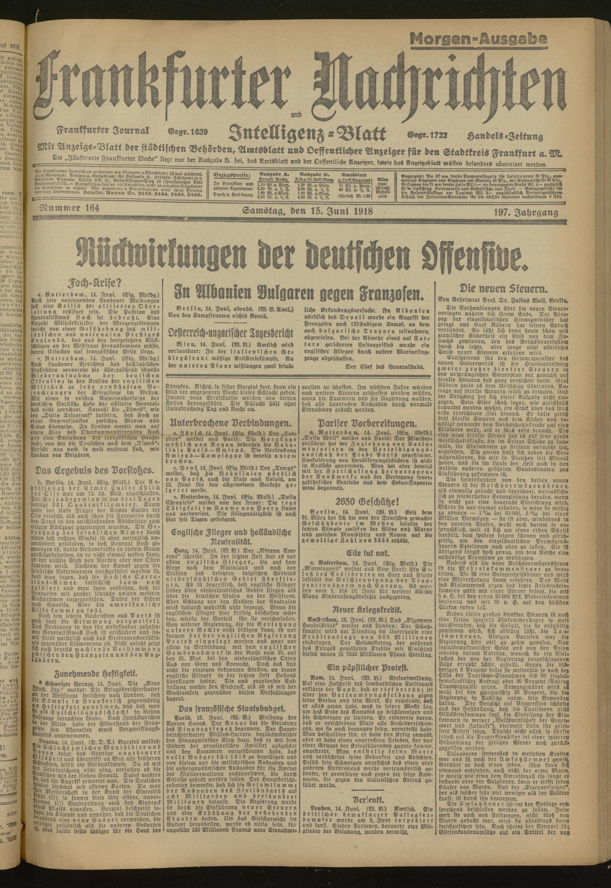 15.06.1918 Morgen-Ausgabe = Nr. 164