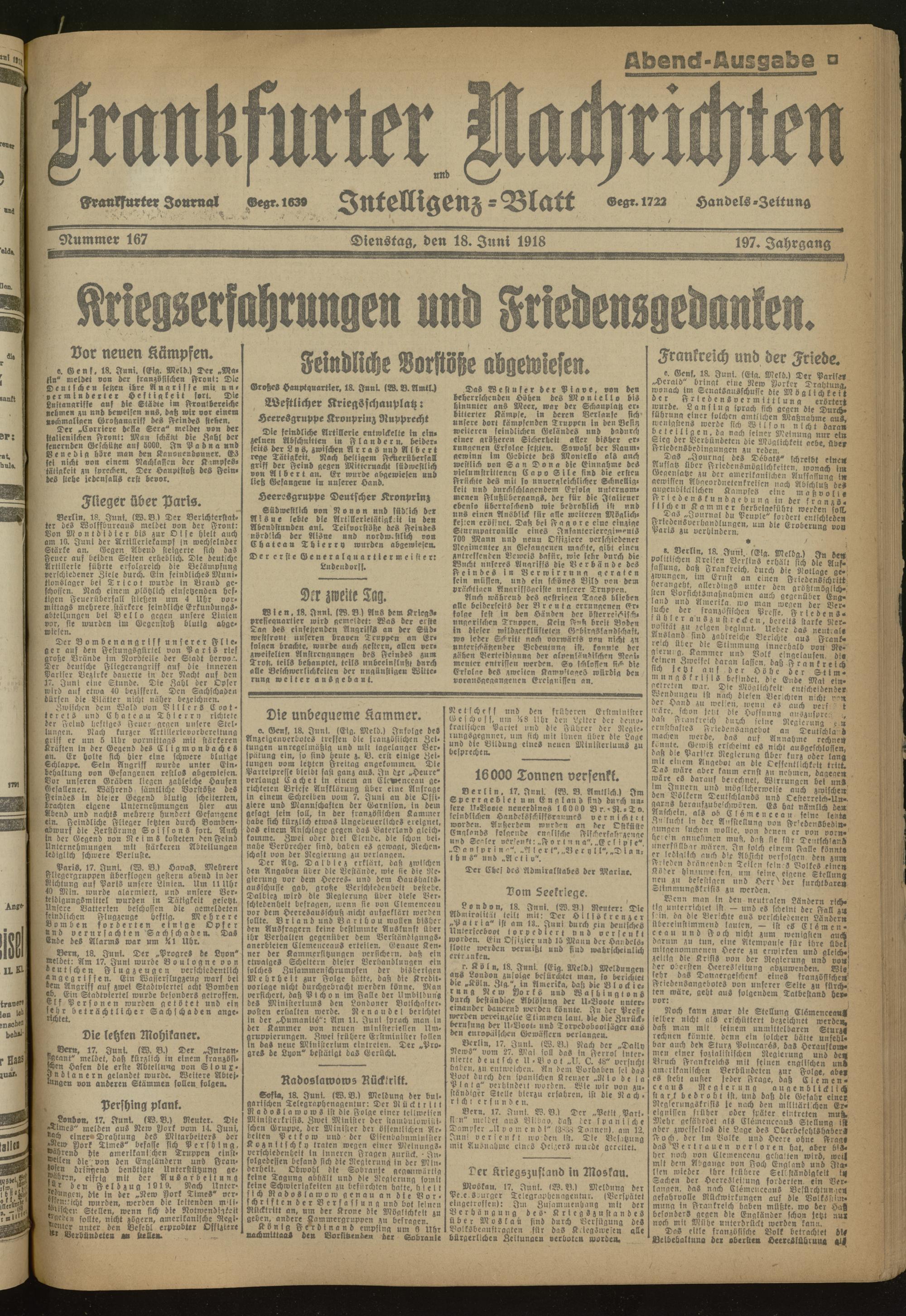 18.06.1918 Abend-Ausgabe = Nr. 167