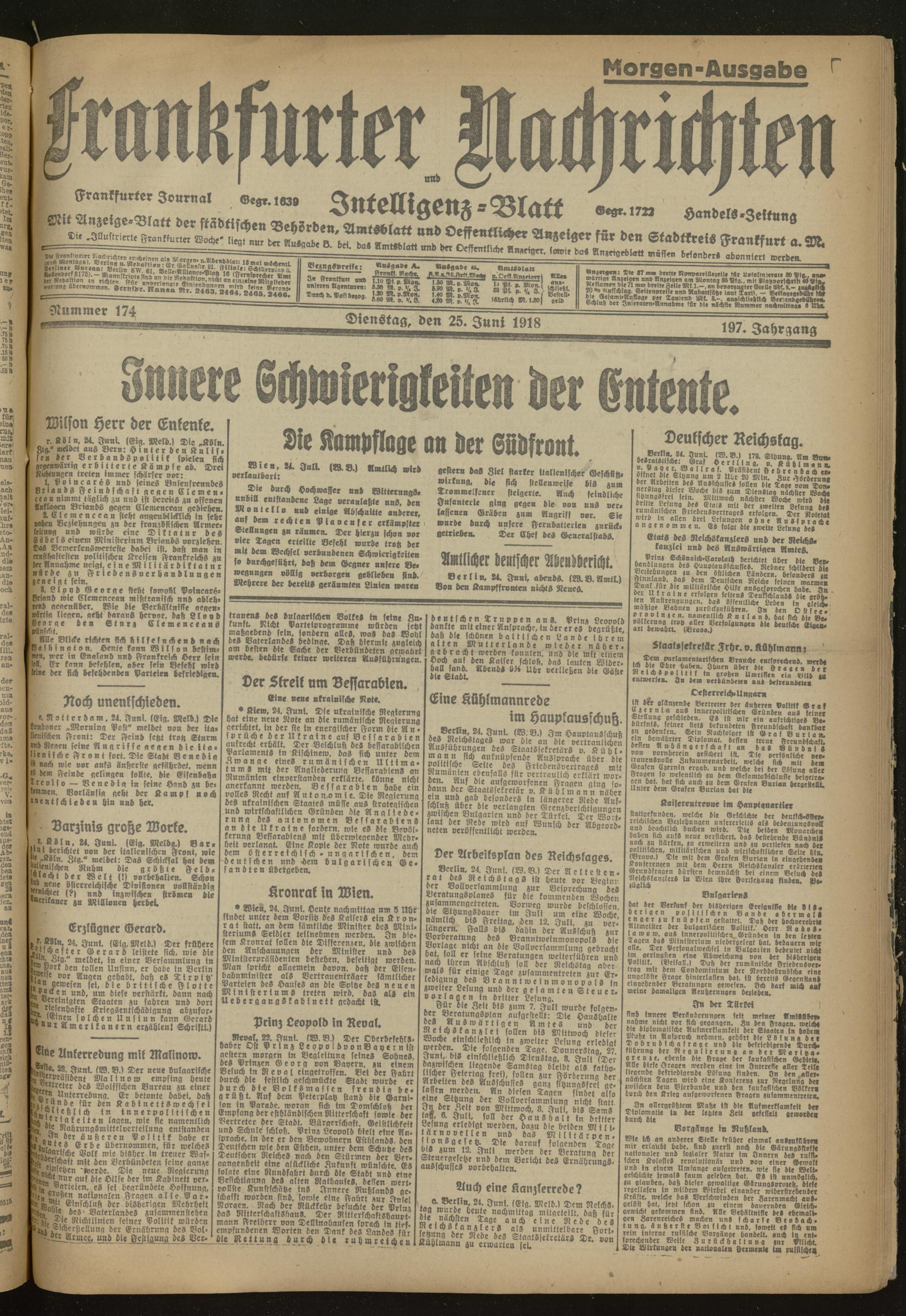25.06.1918 Morgen-Ausgabe = Nr. 174
