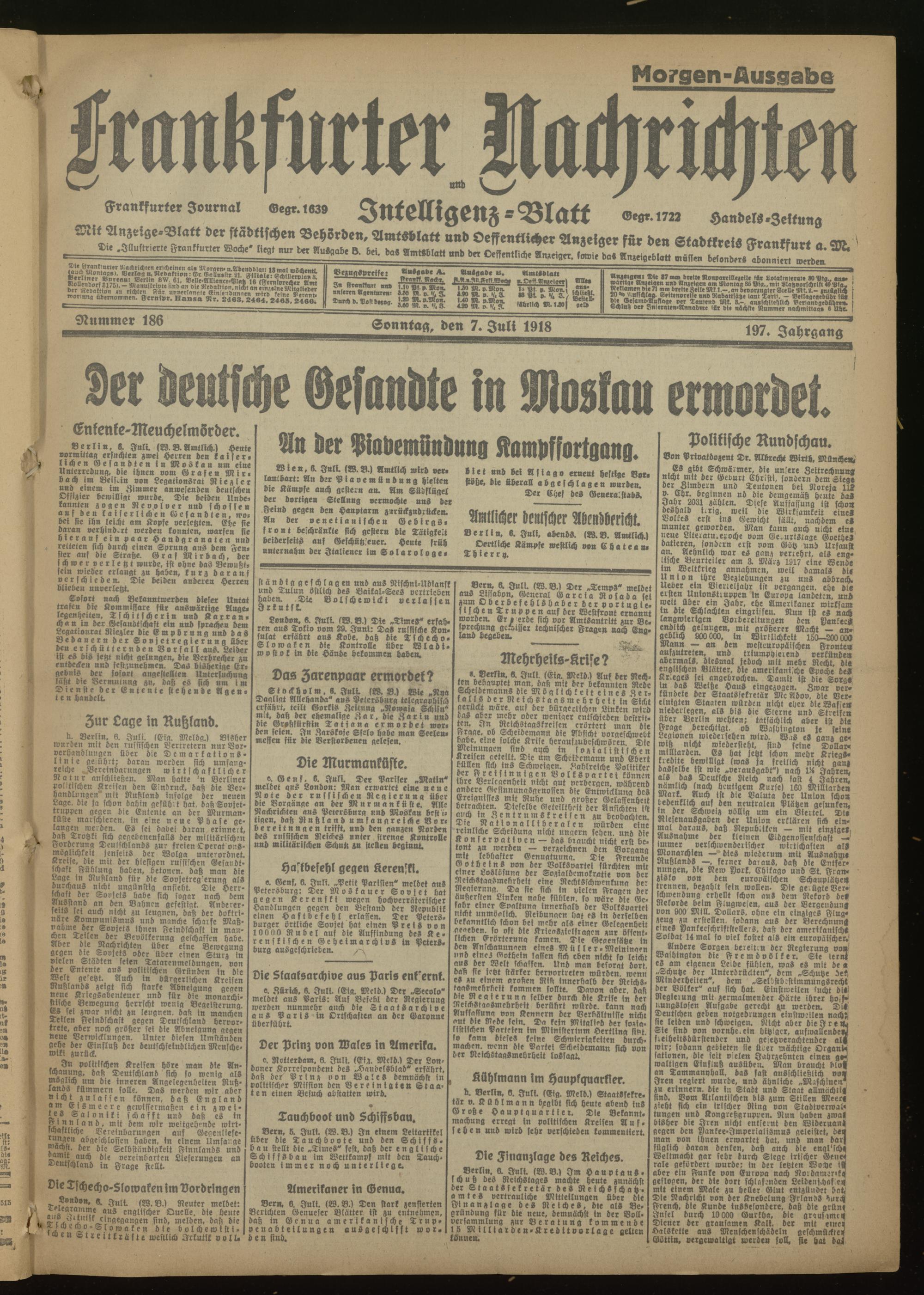 07.07.1918 Morgen-Ausgabe = Nr. 186