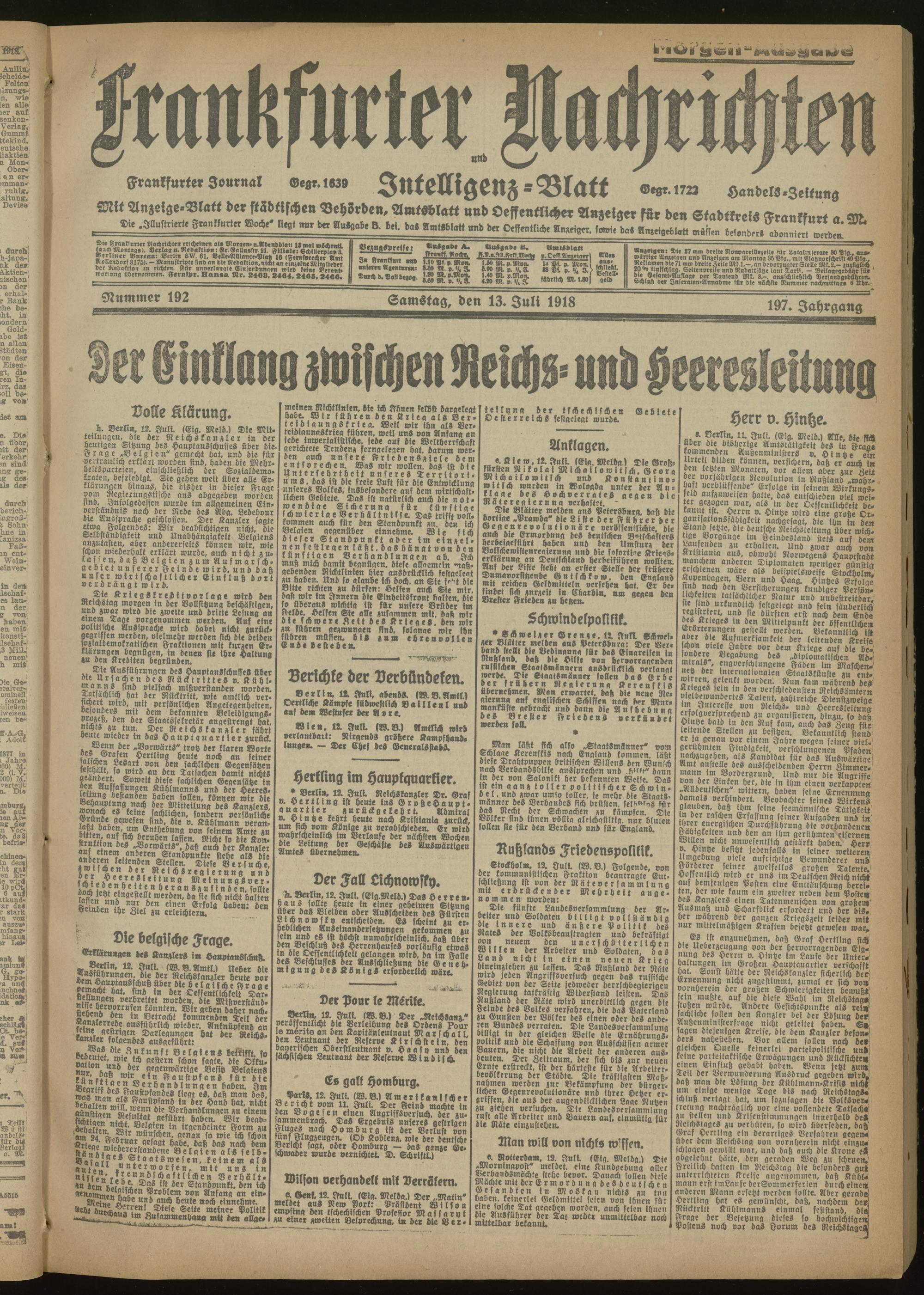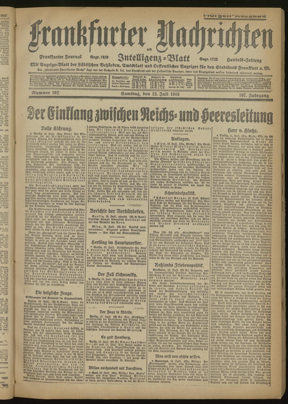 13.07.1918 Morgen-Ausgabe = Nr. 192