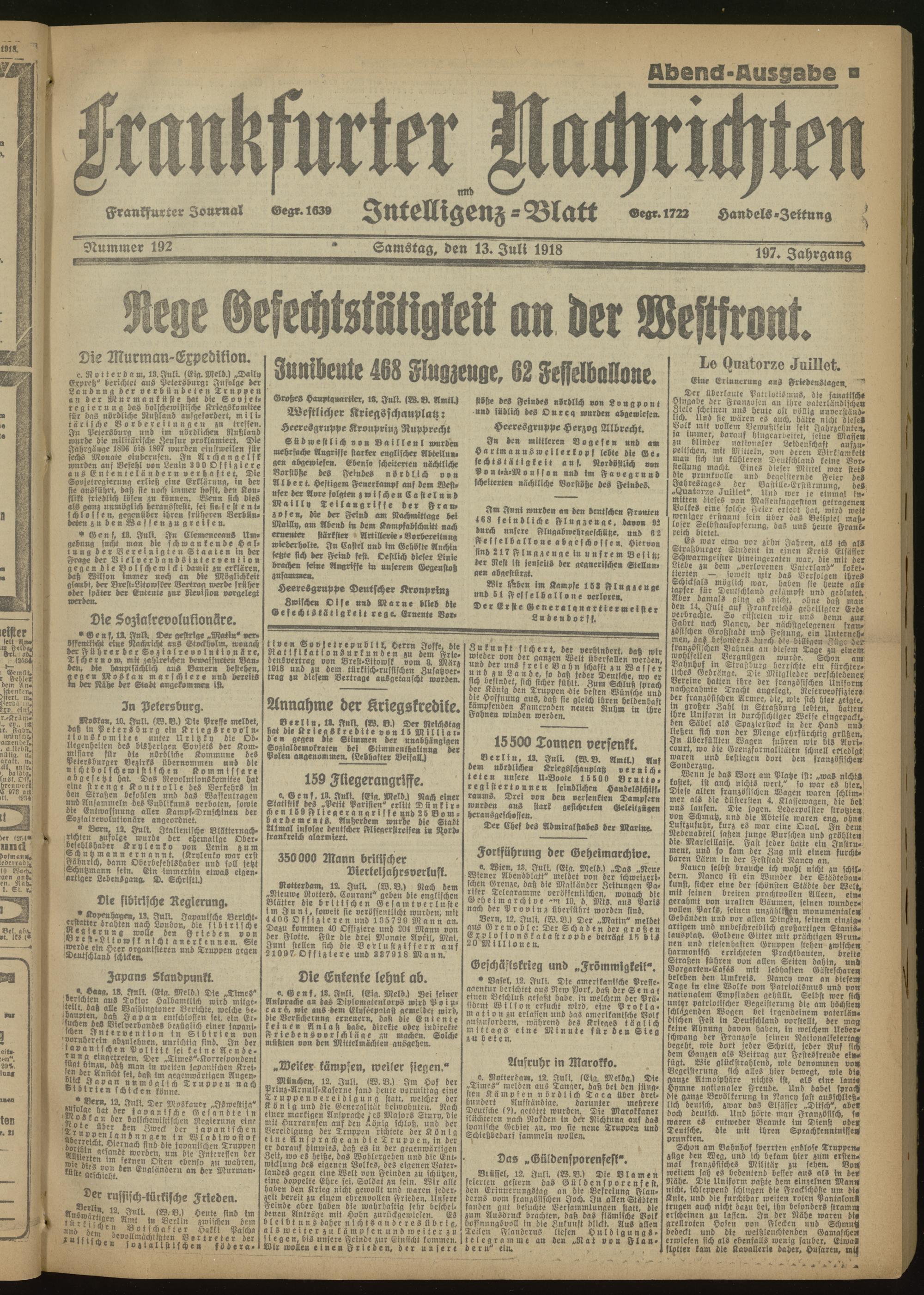 13.07.1918 Abend-Ausgabe = Nr. 192