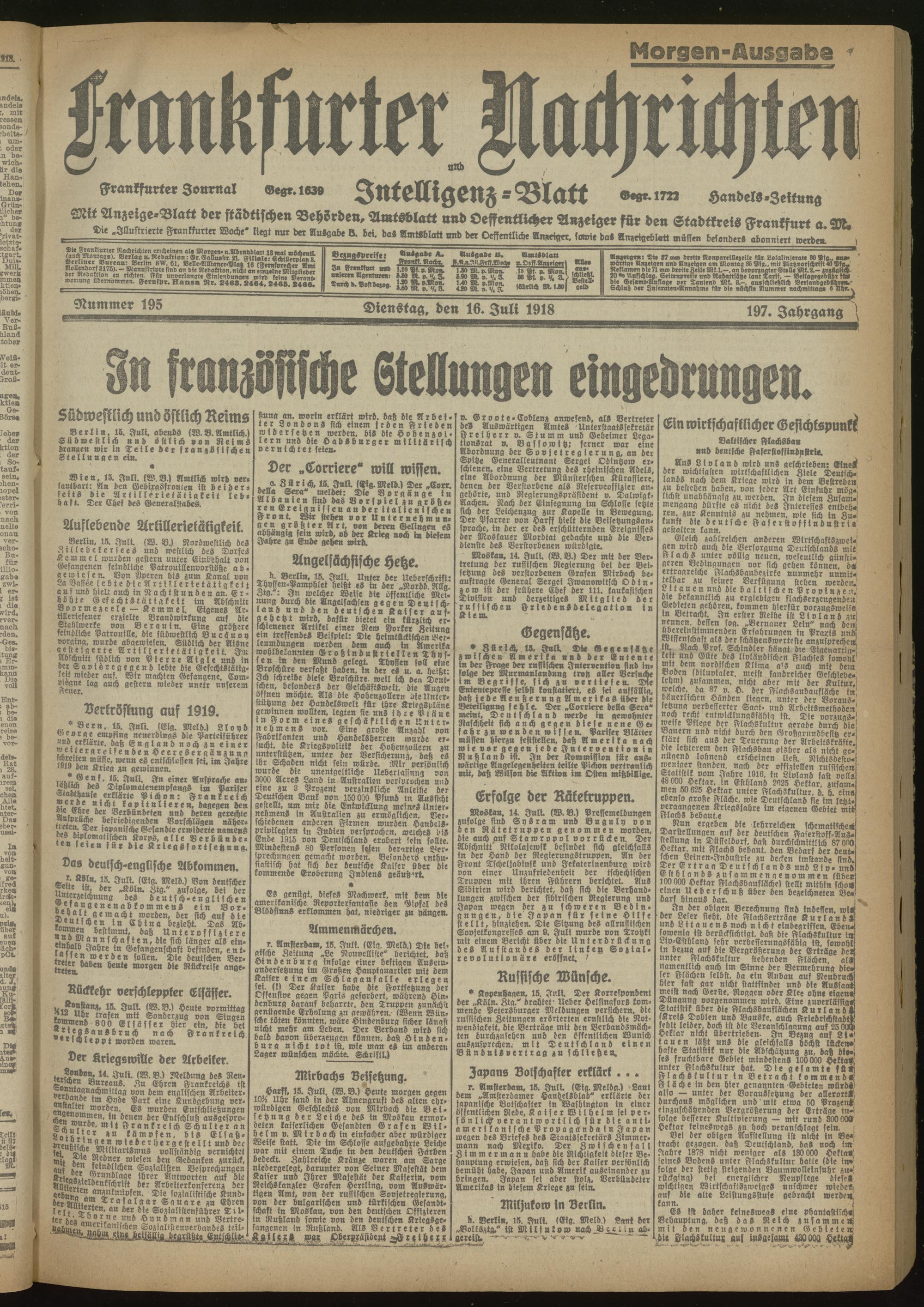 16.07.1918 Morgen-Ausgabe = Nr. 195