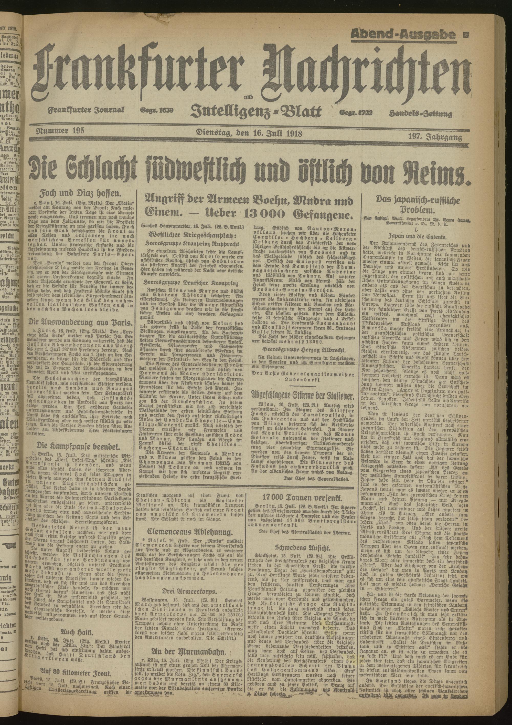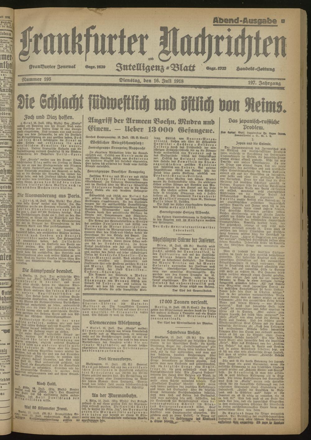 16.07.1918 Abend-Ausgabe = Nr. 195
