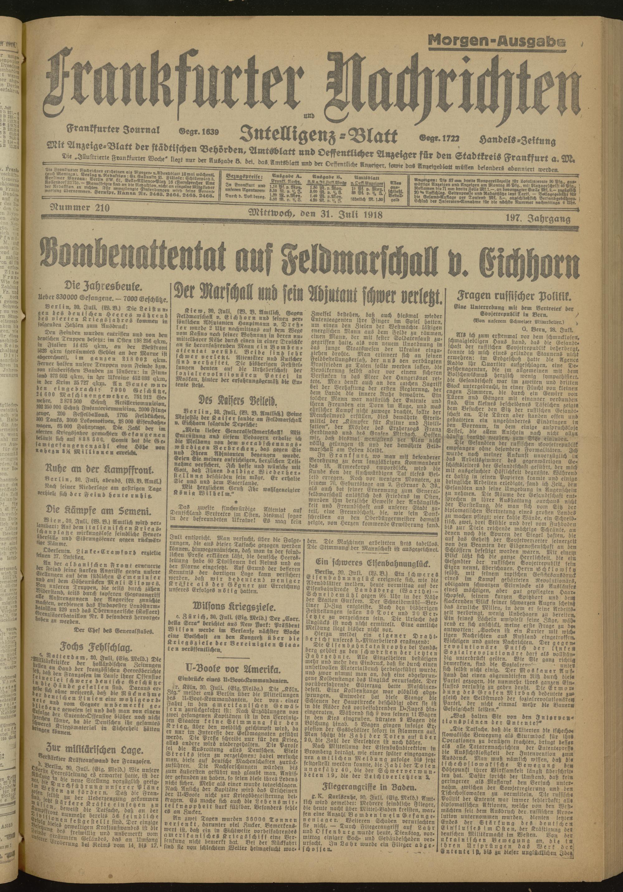 31.07.1918 Morgen-Ausgabe = Nr. 210