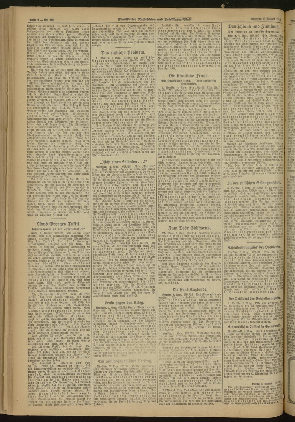 05.08.1918 Morgen-Ausgabe = Nr. 215