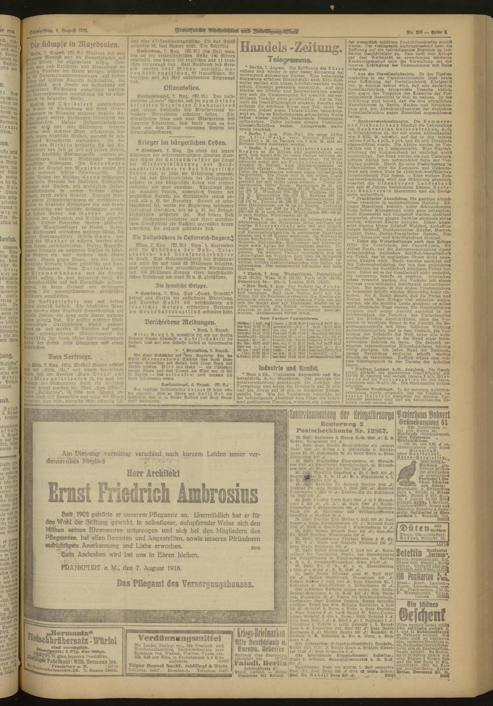 08.08.1918 Morgen-Ausgabe = Nr. 218