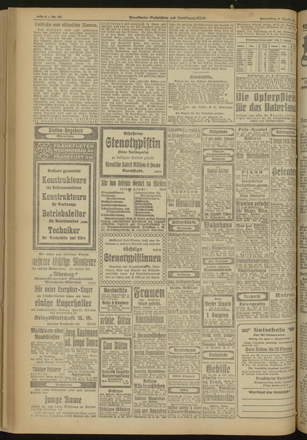 Frankfurter Nachrichten und Intelligenzblatt. 1914-1918