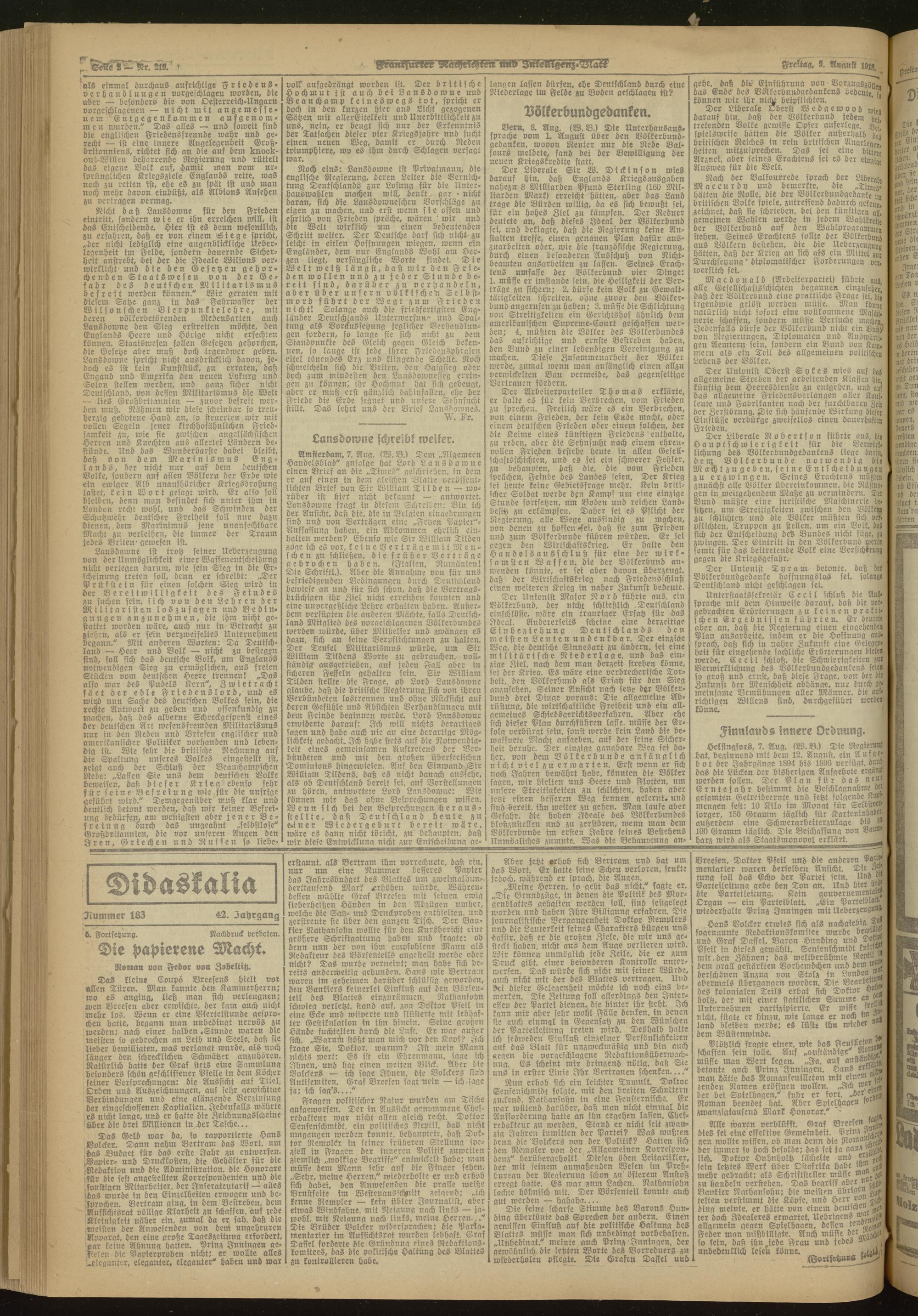 09.08.1918 Morgen-Ausgabe = Nr. 219
