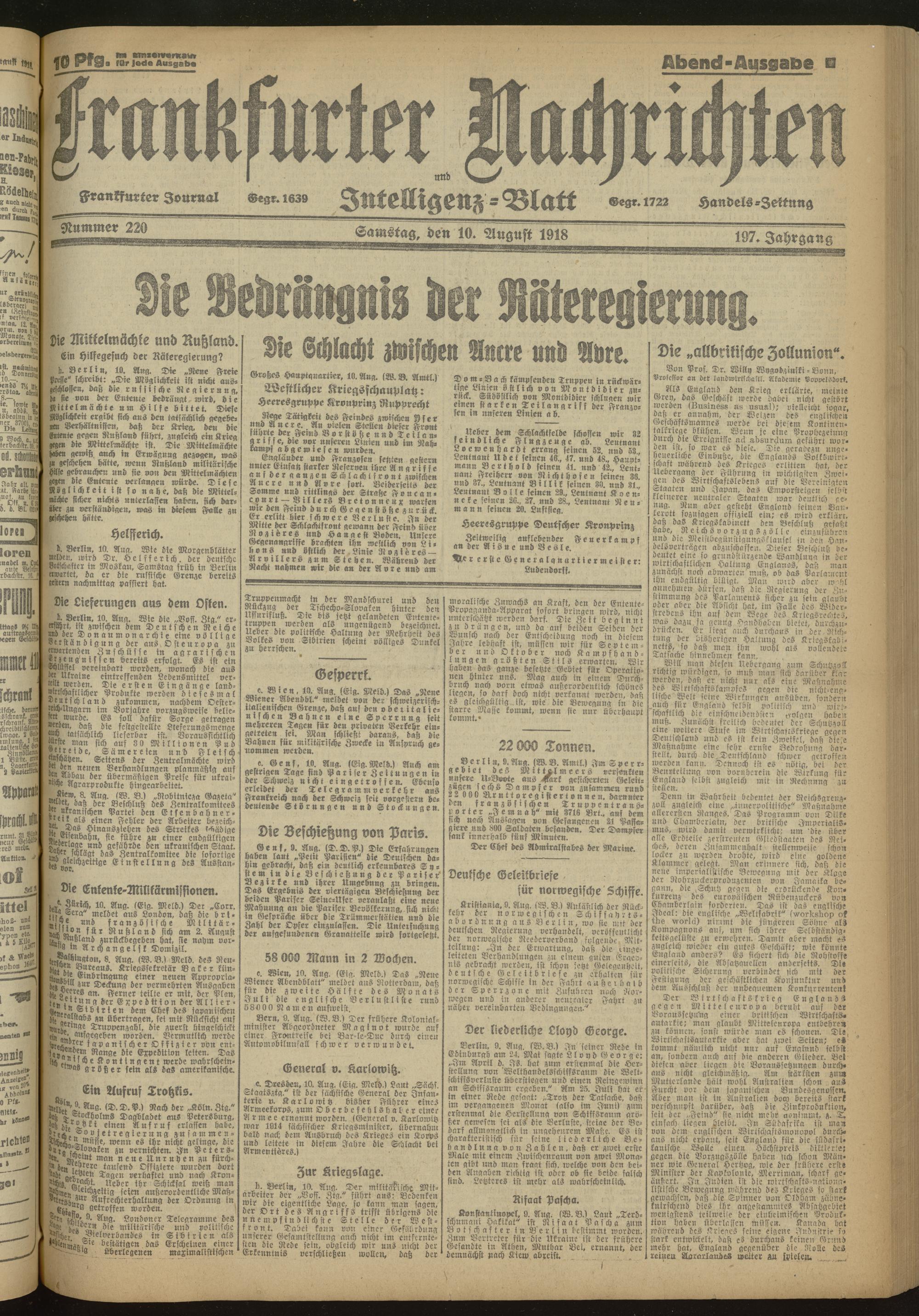 10.08.1918 Abend-Ausgabe = Nr. 220