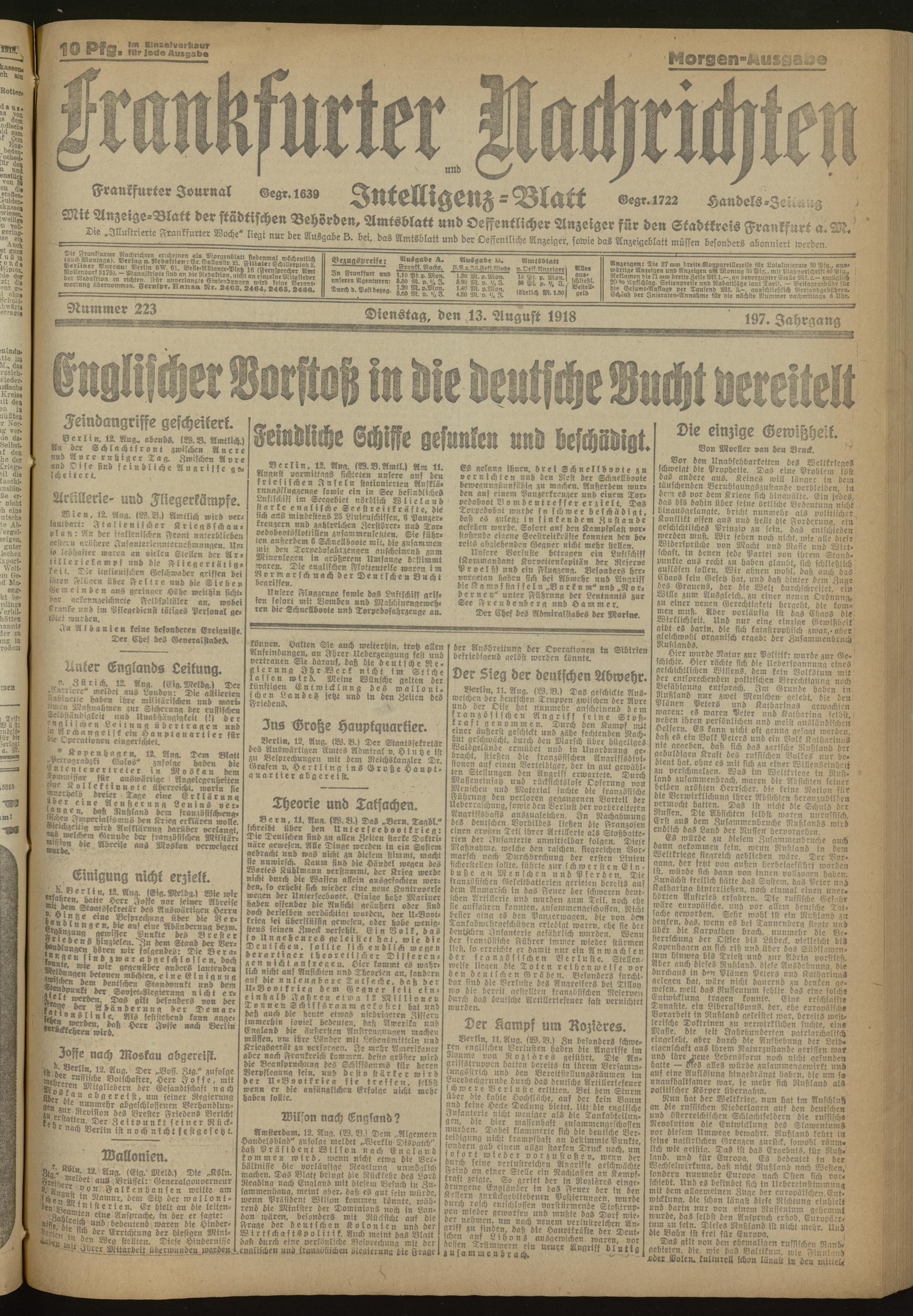 13.08.1918 Morgen-Ausgabe = Nr. 223