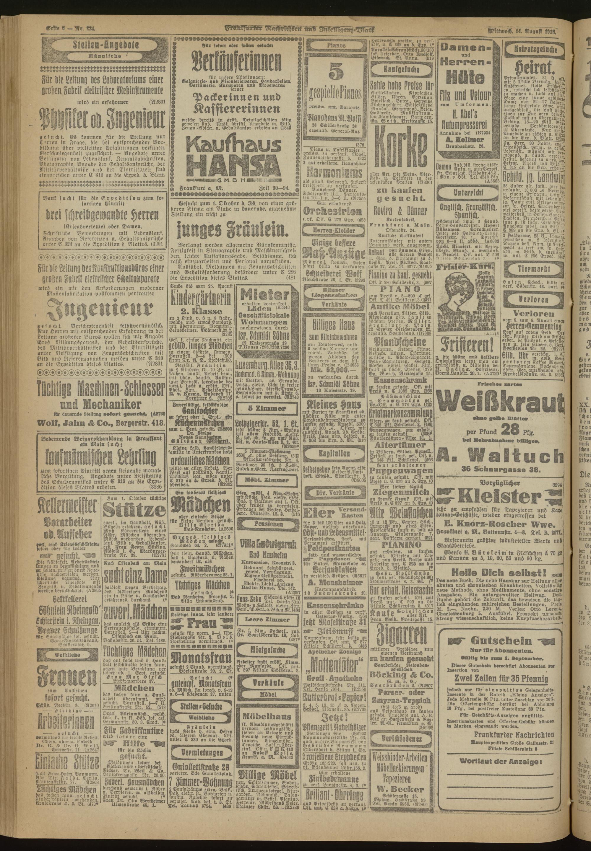 14.08.1918 Morgen-Ausgabe = Nr. 224