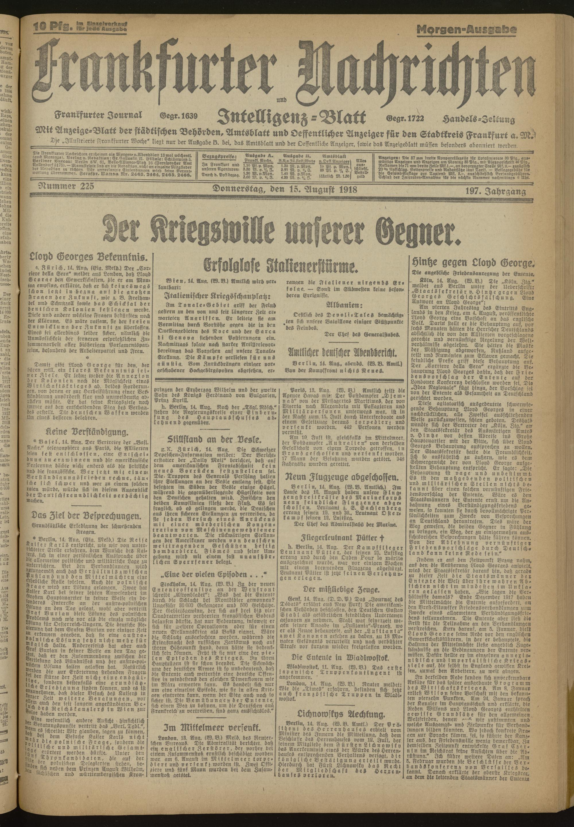 15.08.1918 Morgen-Ausgabe = Nr. 225