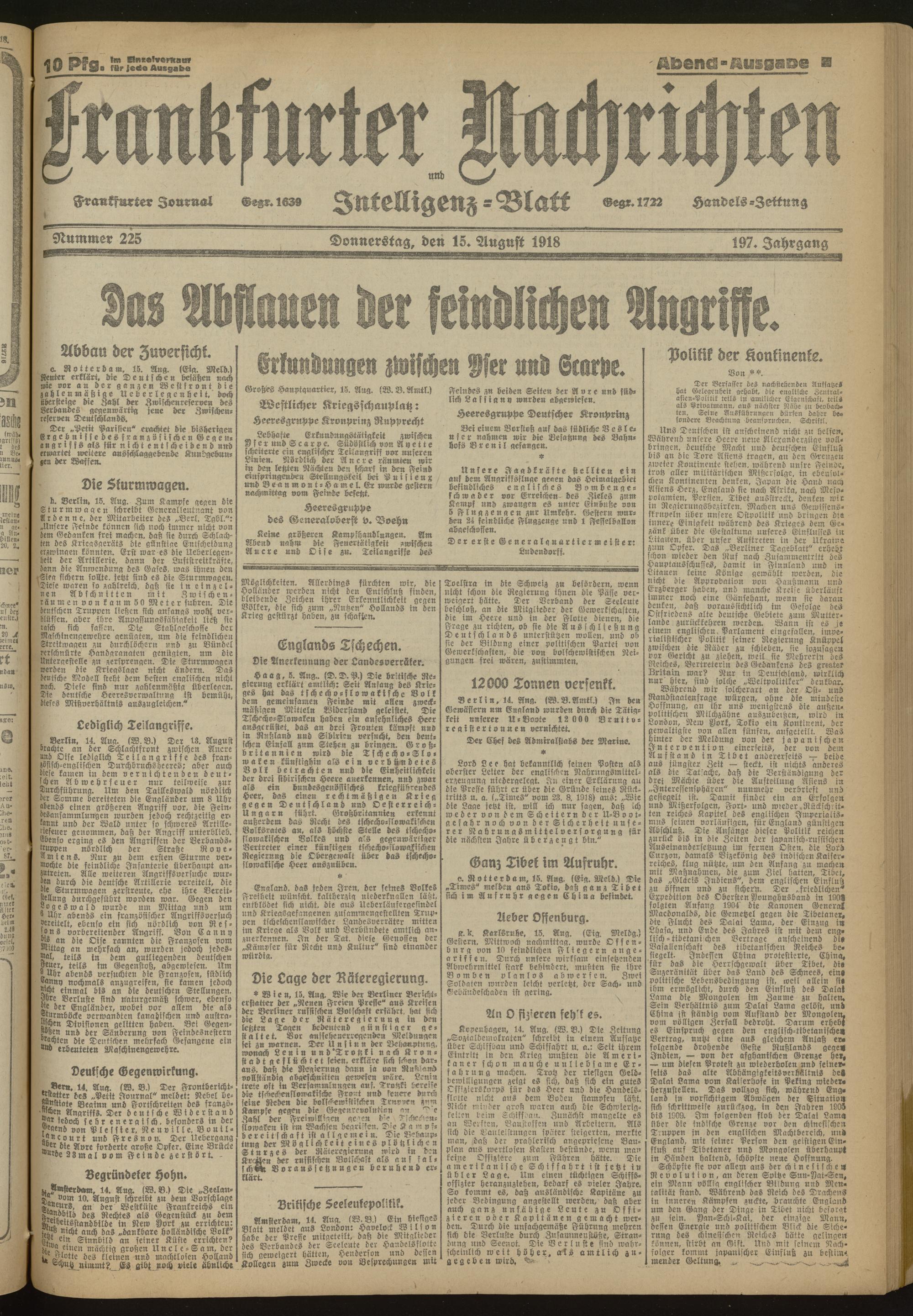 15.08.1918 Abend-Ausgabe = Nr. 225