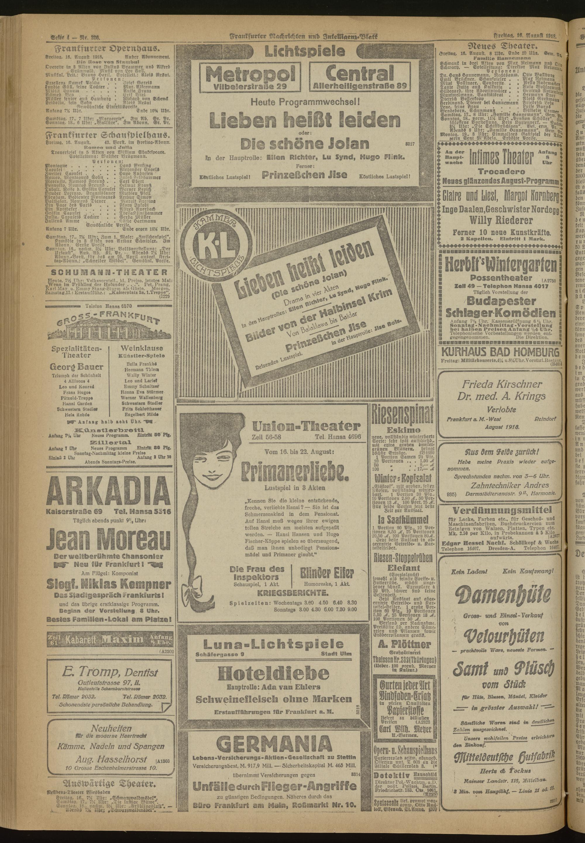 16.08.1918 Morgen-Ausgabe = Nr. 226