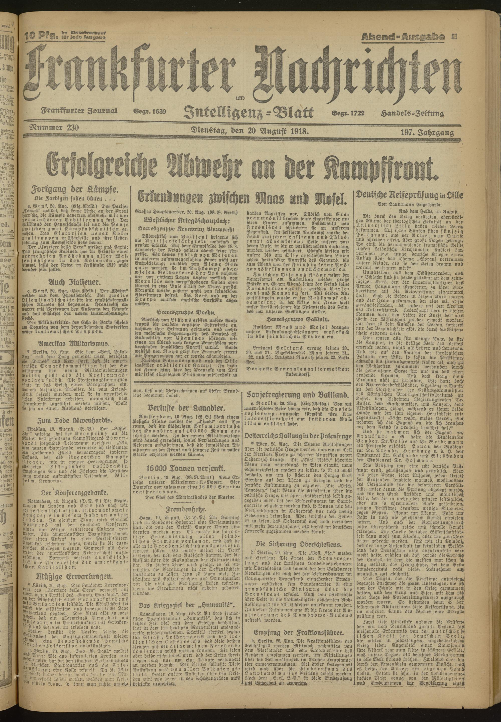 20.08.1918 Abend-Ausgabe = Nr. 230