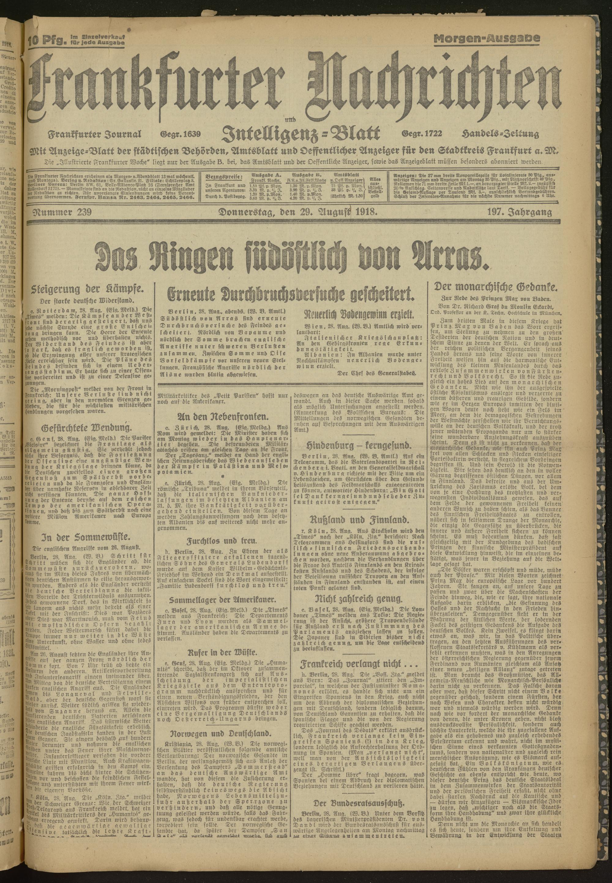 29.08.1918 Morgen-Ausgabe = Nr. 239