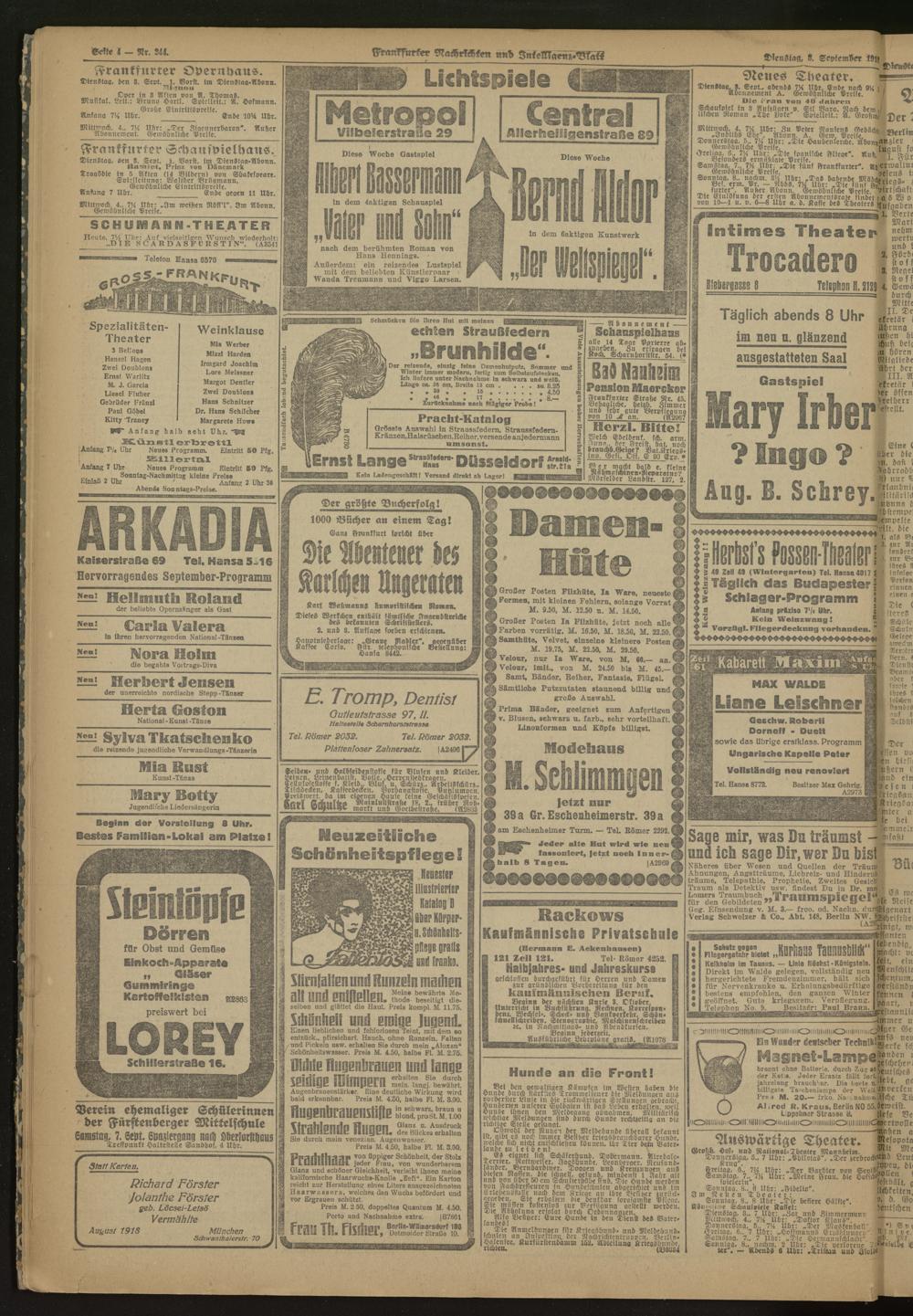 03.09.1918 Morgen-Ausgabe = Nr. 244