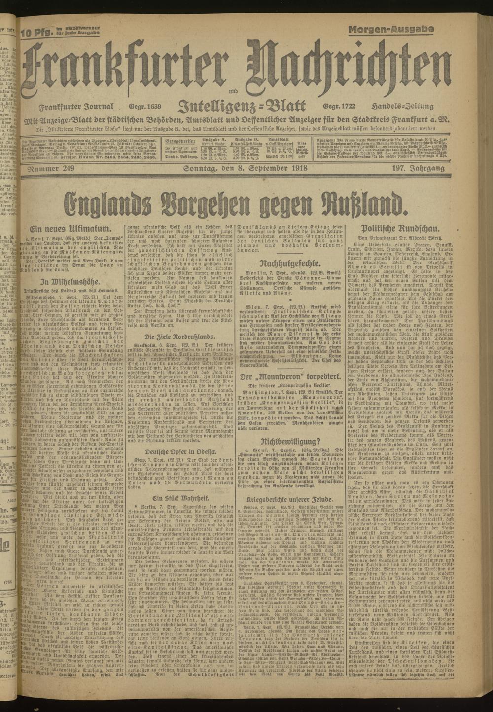 08.09.1918 Morgen-Ausgabe = Nr. 249