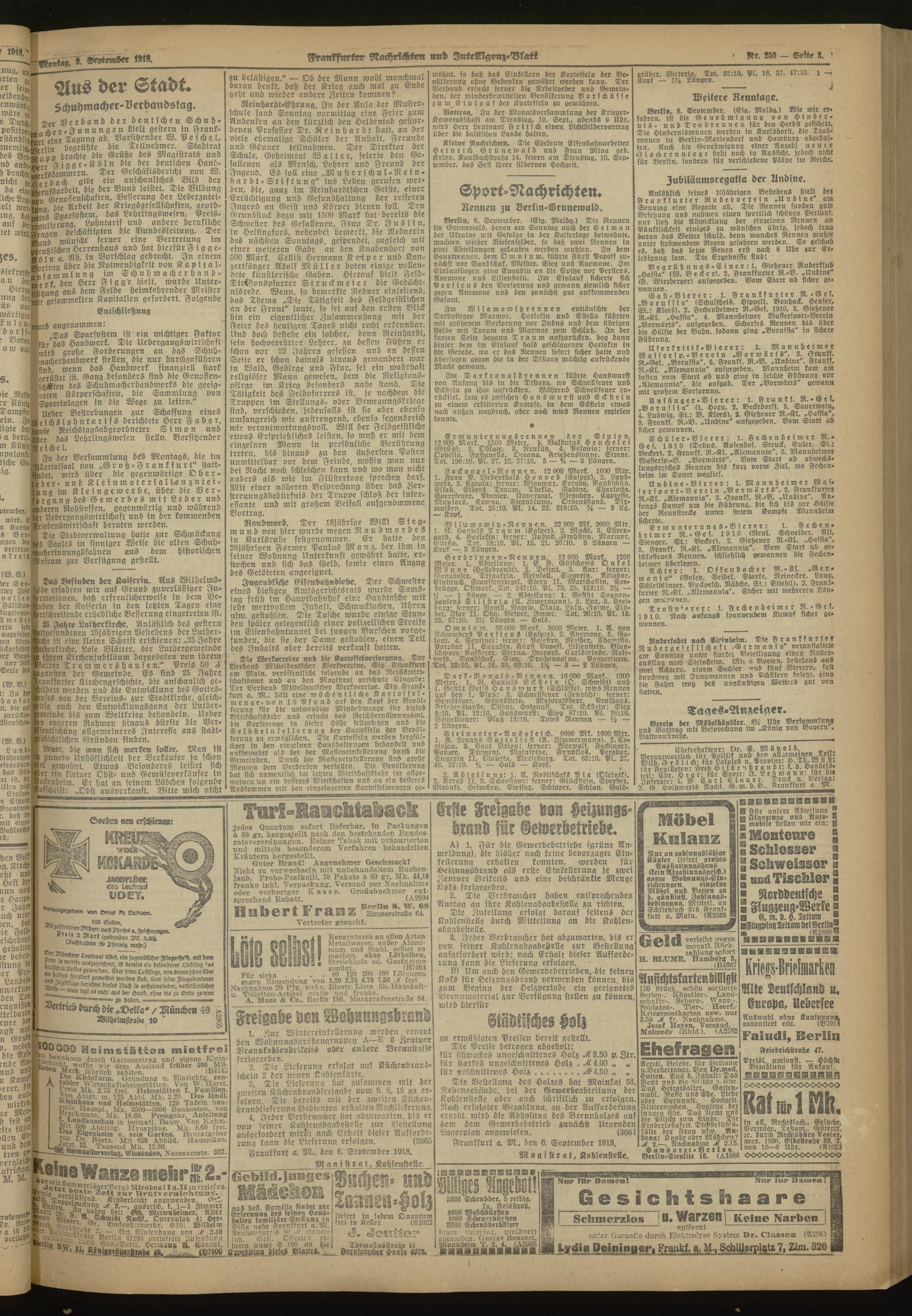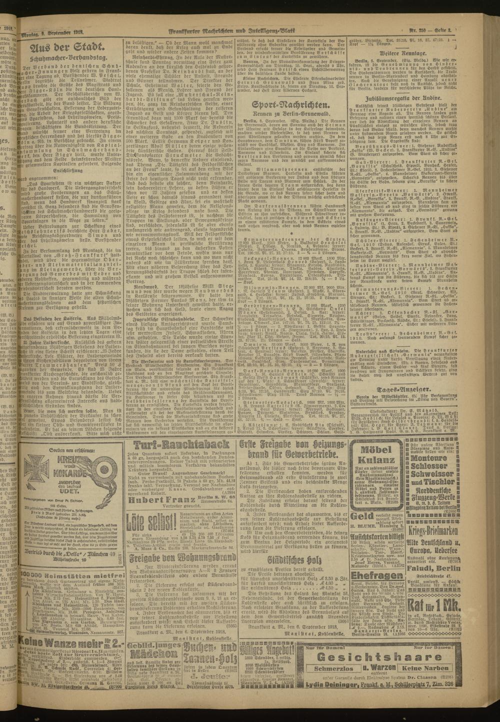 09.09.1918 Morgen-Ausgabe = Nr. 250