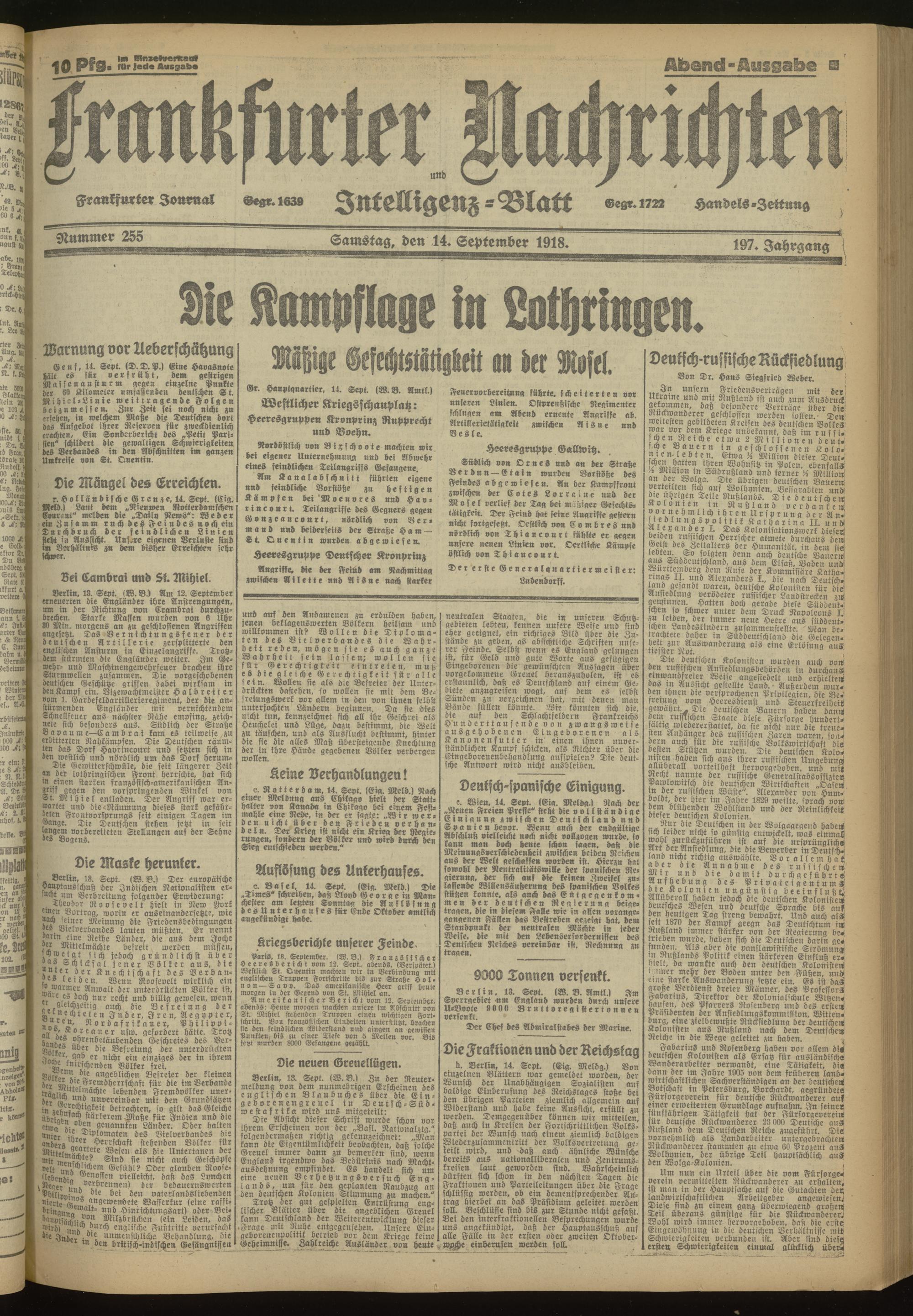 14.09.1918 Abend-Ausgabe = Nr. 255