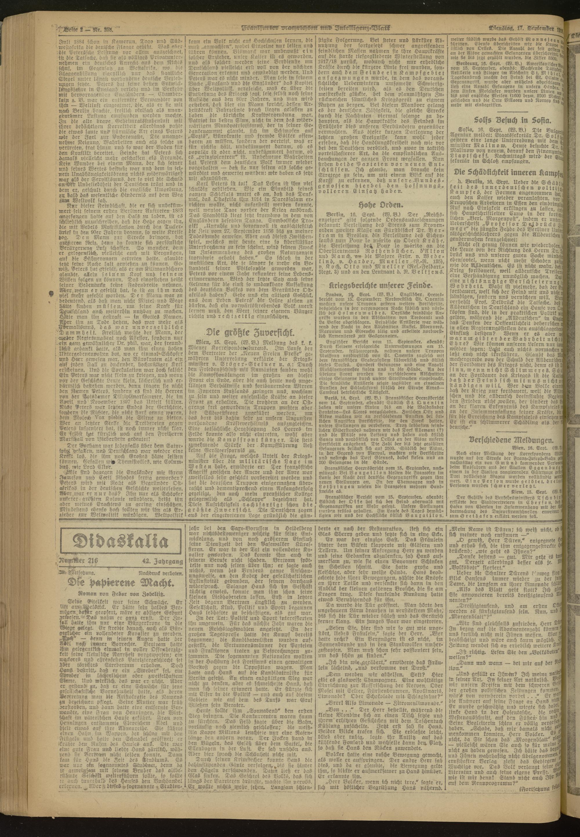 17.09.1918 Morgen-Ausgabe = Nr. 258