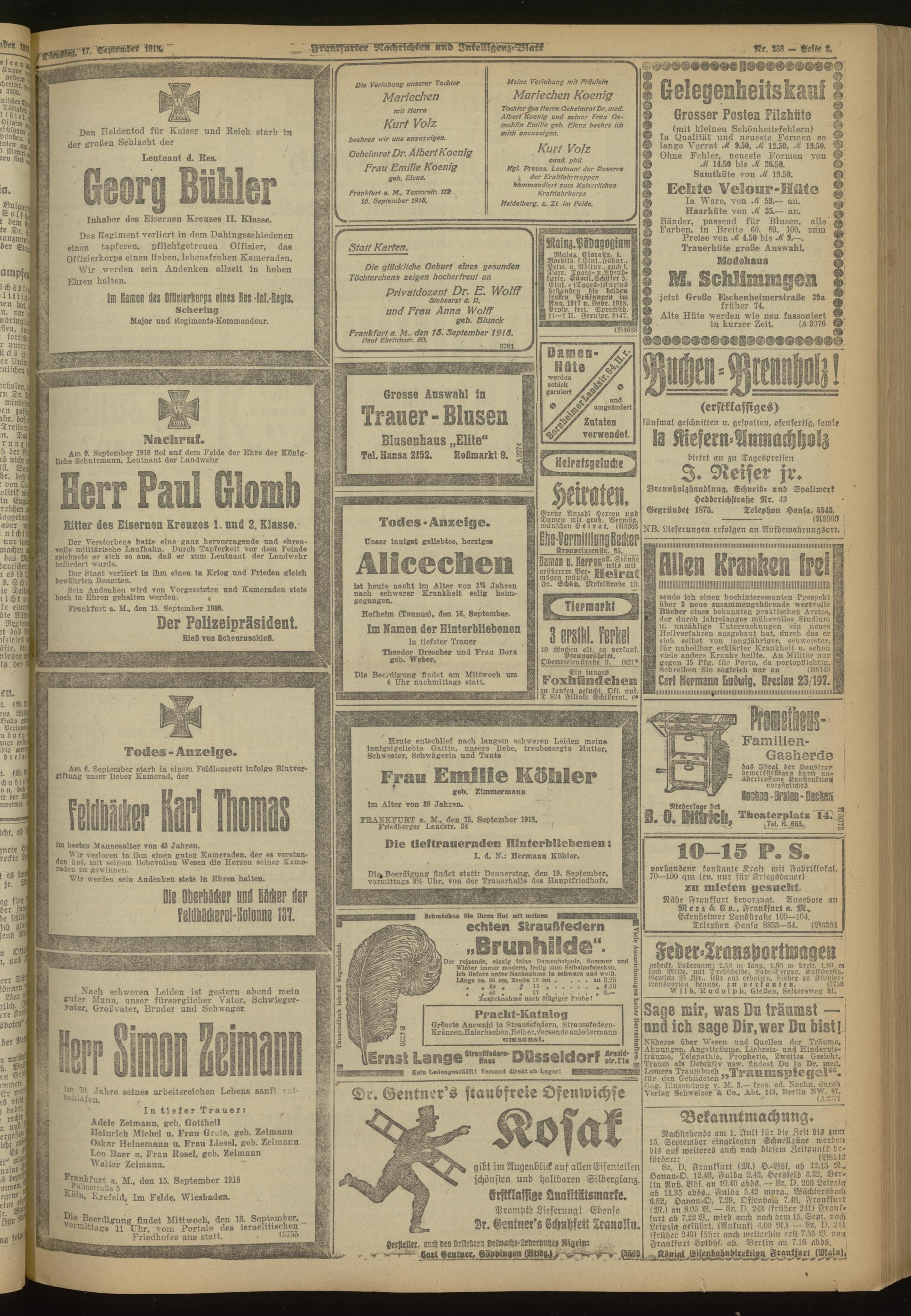 17.09.1918 Morgen-Ausgabe = Nr. 258