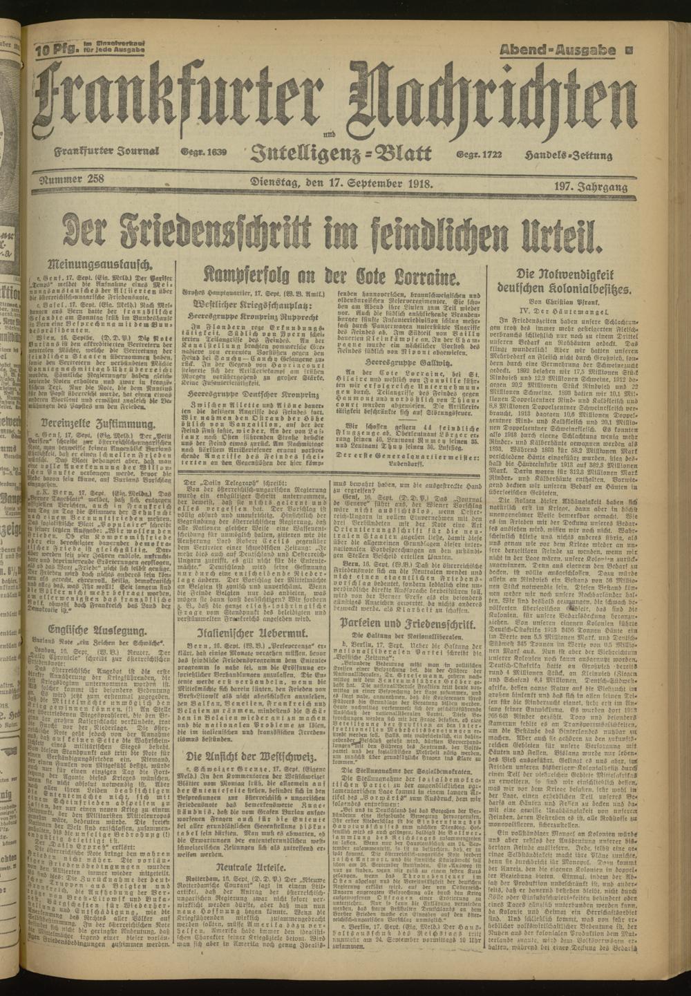 17.09.1918 Abend-Ausgabe = Nr. 258