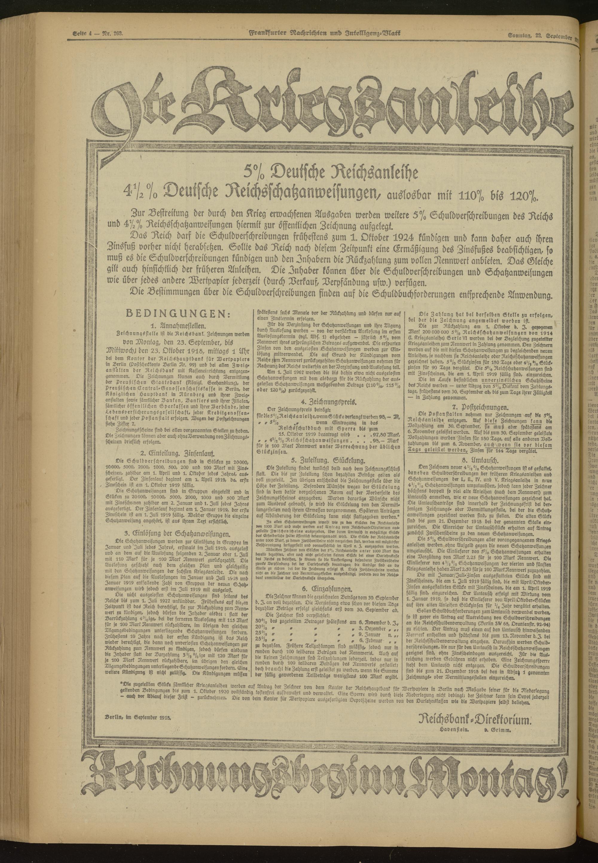 22.09.1918 Morgen-Ausgabe = Nr. 263