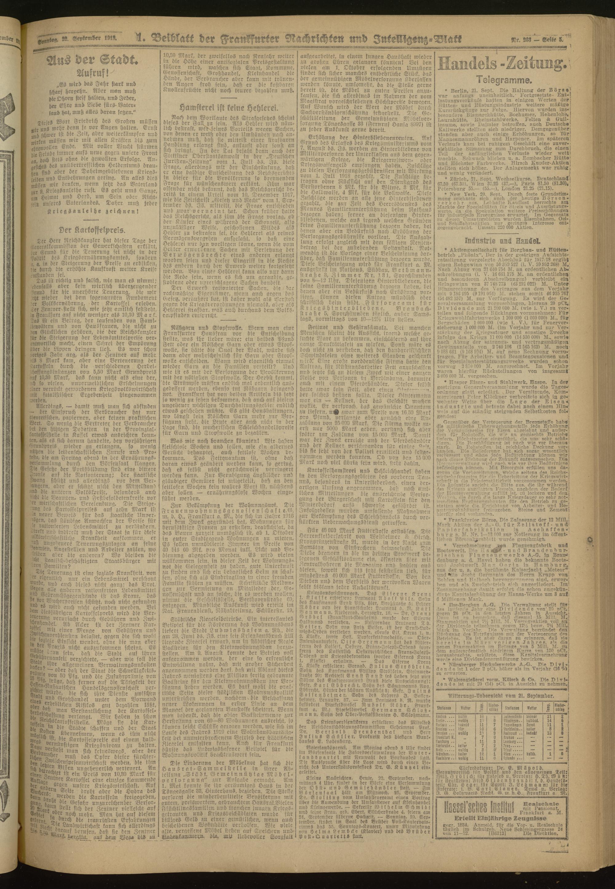 22.09.1918 Morgen-Ausgabe = Nr. 263