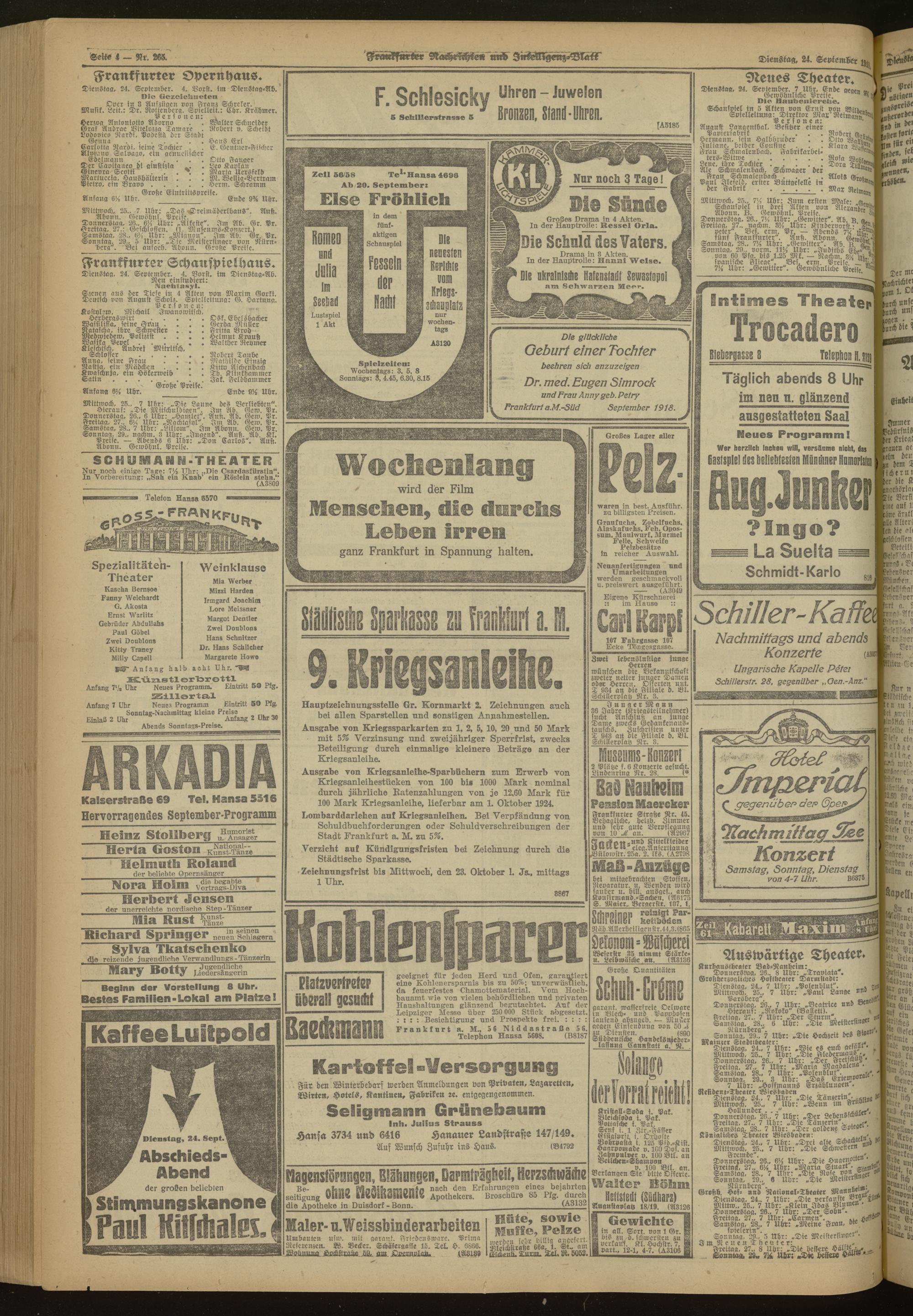 24.09.1918 Morgen-Ausgabe = Nr. 265