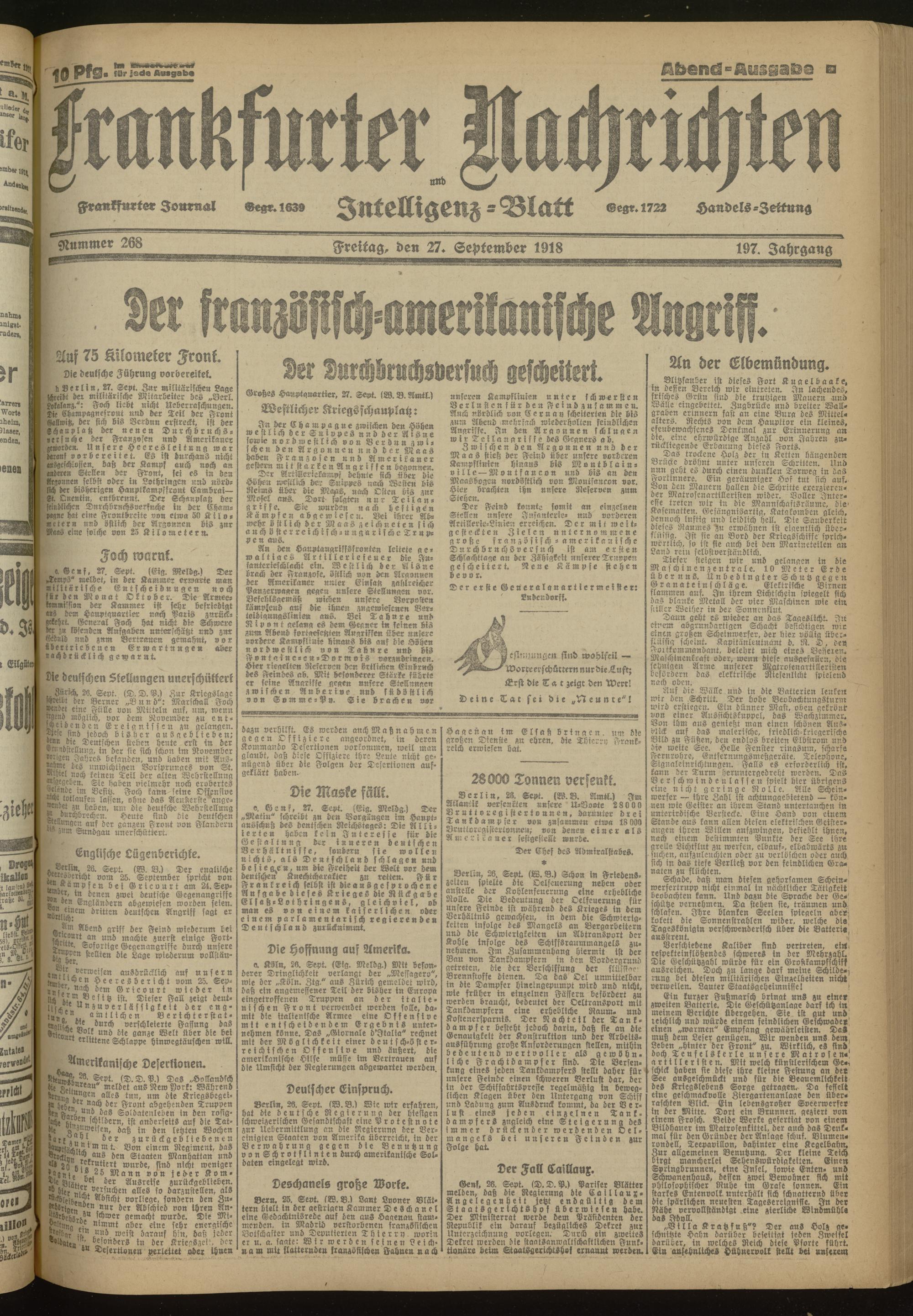 27.09.1918 Abend-Ausgabe = Nr. 268