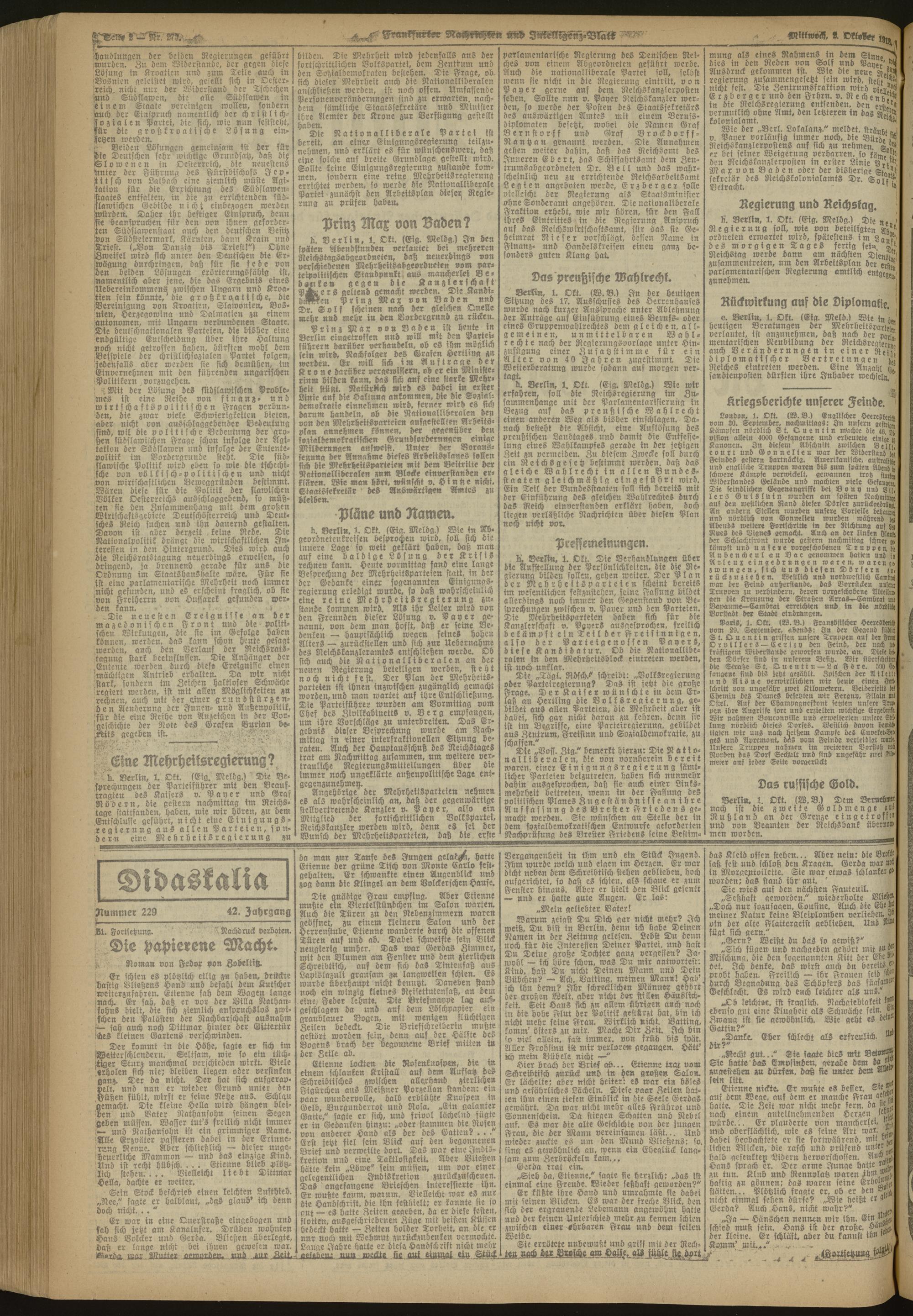 02.10.1918 Morgen-Ausgabe = Nr. 273