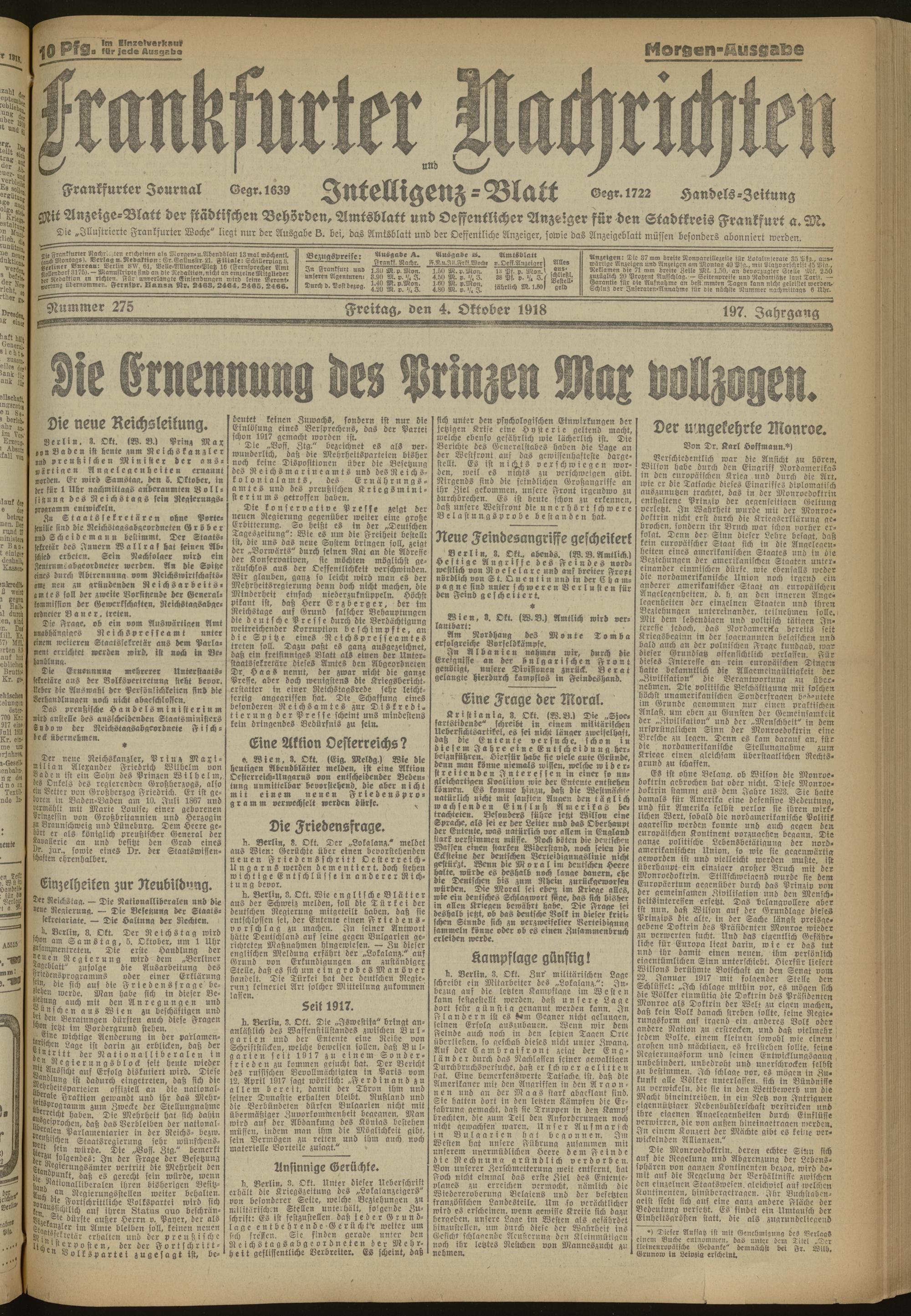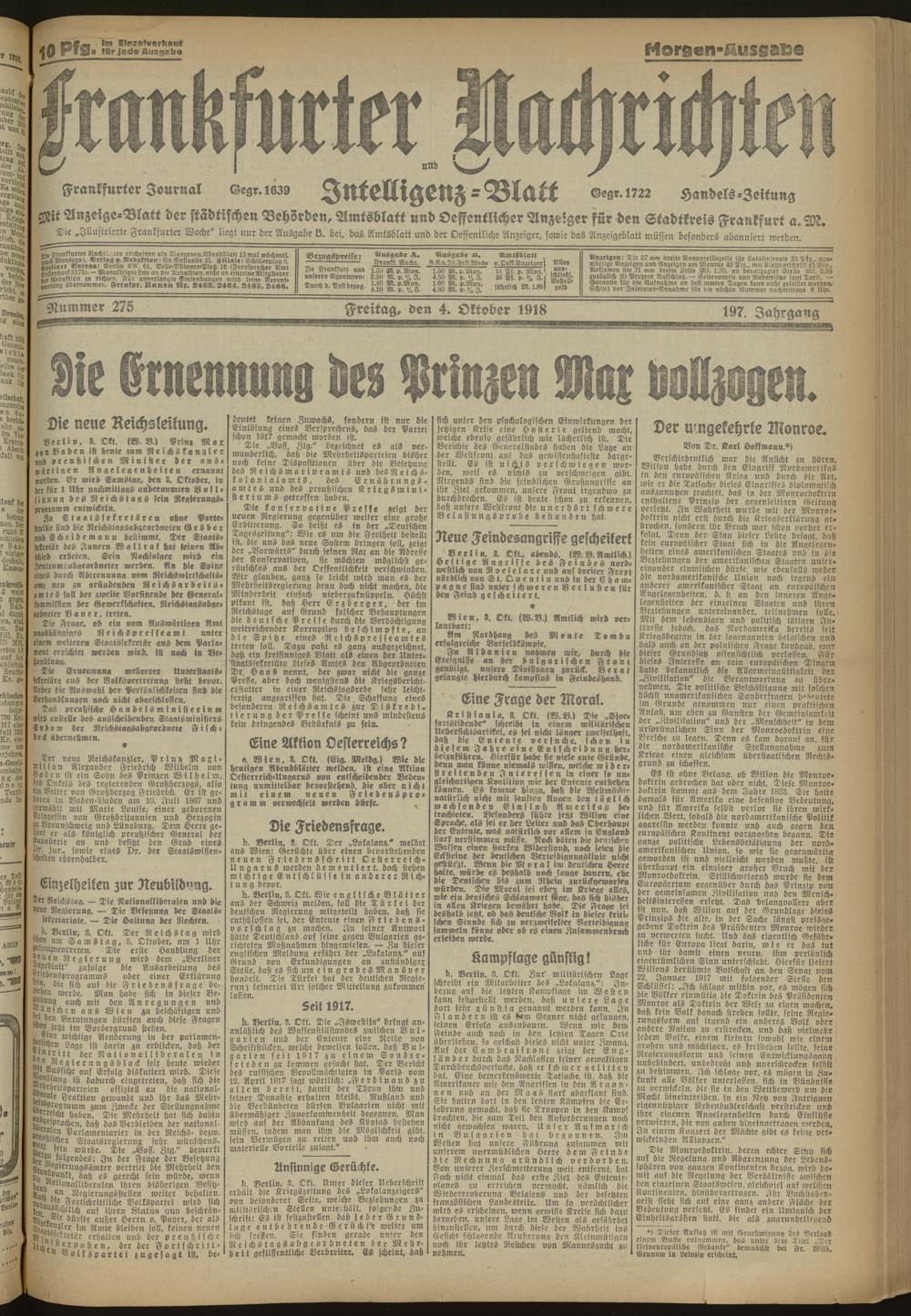 04.10.1918 Morgen-Ausgabe = Nr. 275