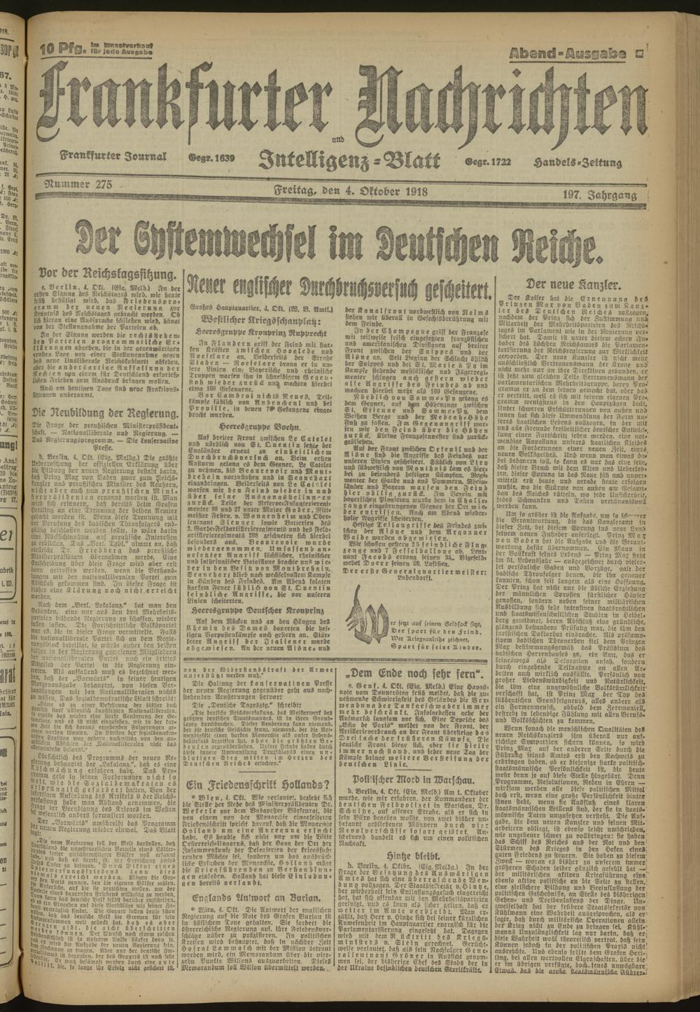 04.10.1918 Abend-Ausgabe = Nr. 275