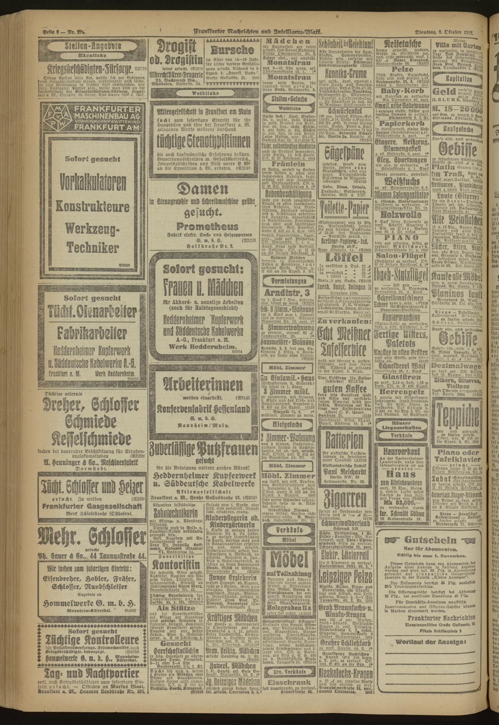 Frankfurter Nachrichten und Intelligenzblatt. 1914-1918