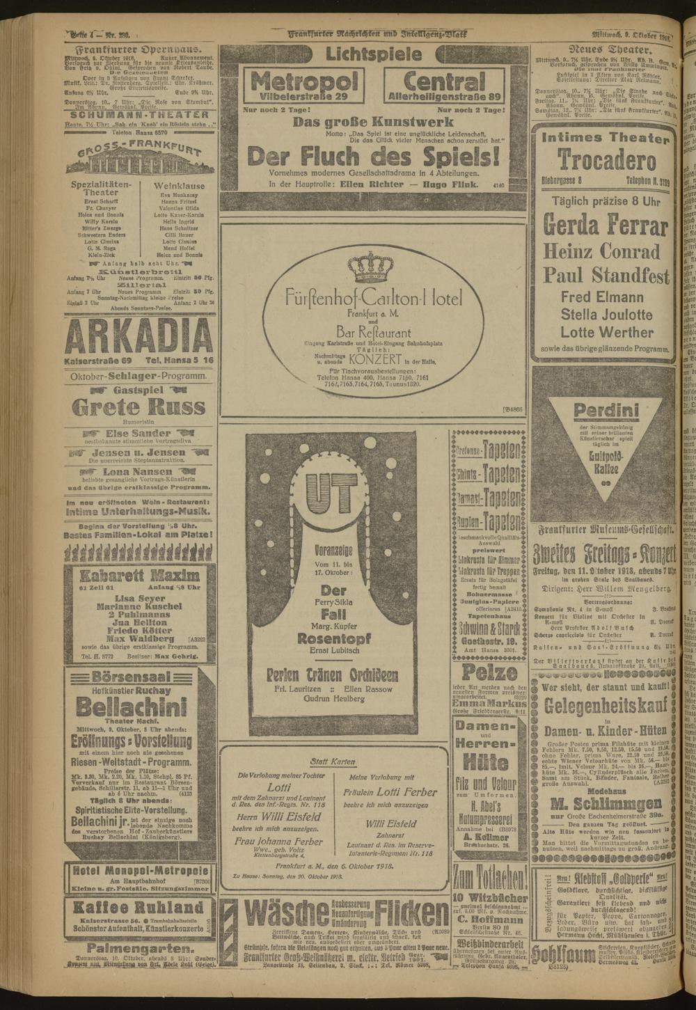 Frankfurter Nachrichten und Intelligenzblatt. 1914-1918