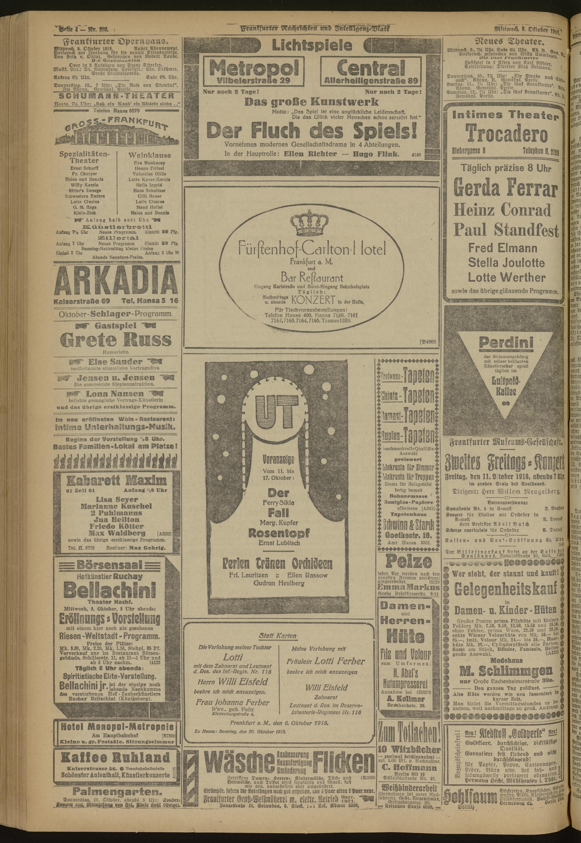 09.10.1918 Morgen-Ausgabe = Nr. 280