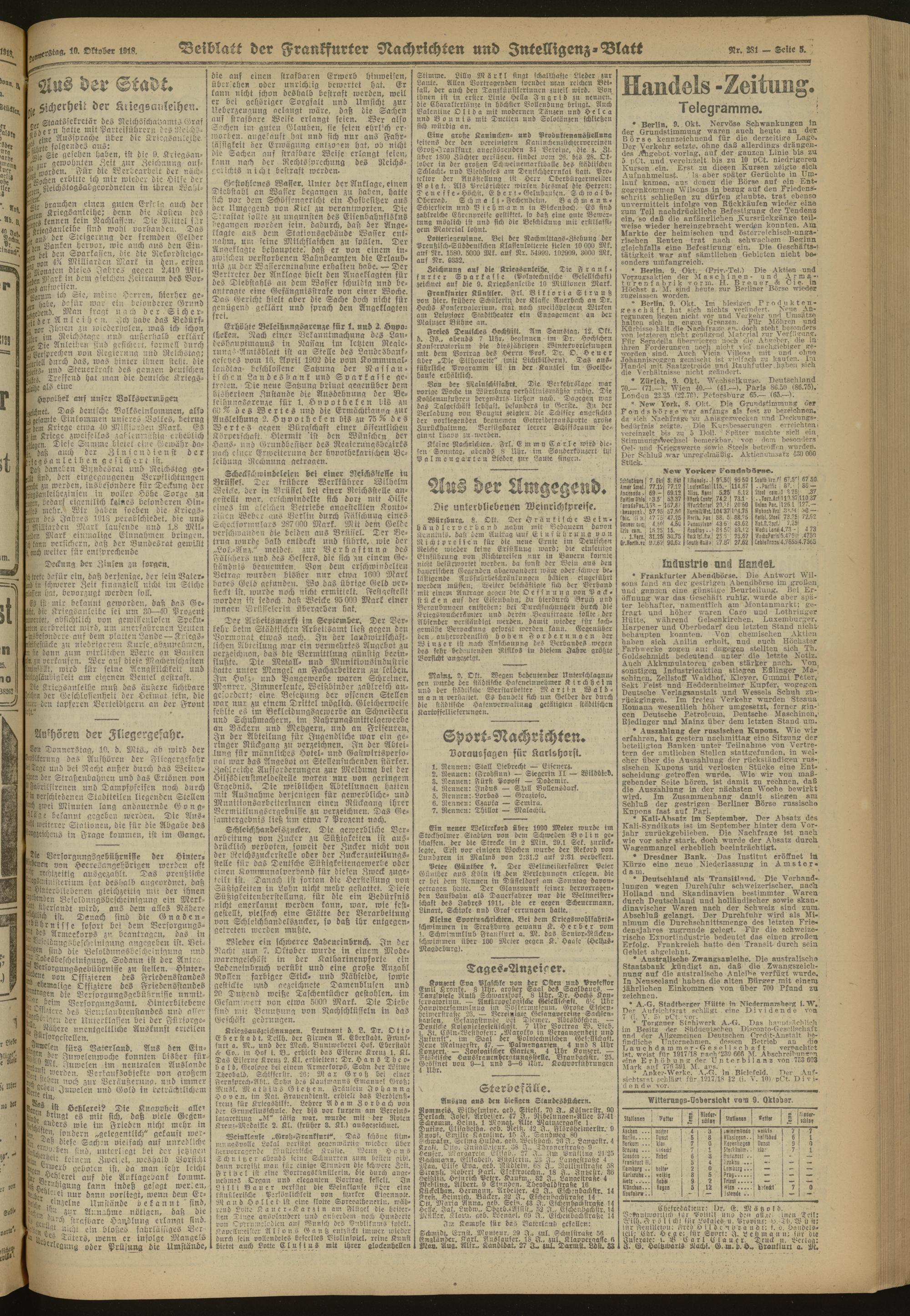 10.10.1918 Morgen-Ausgabe = Nr. 281