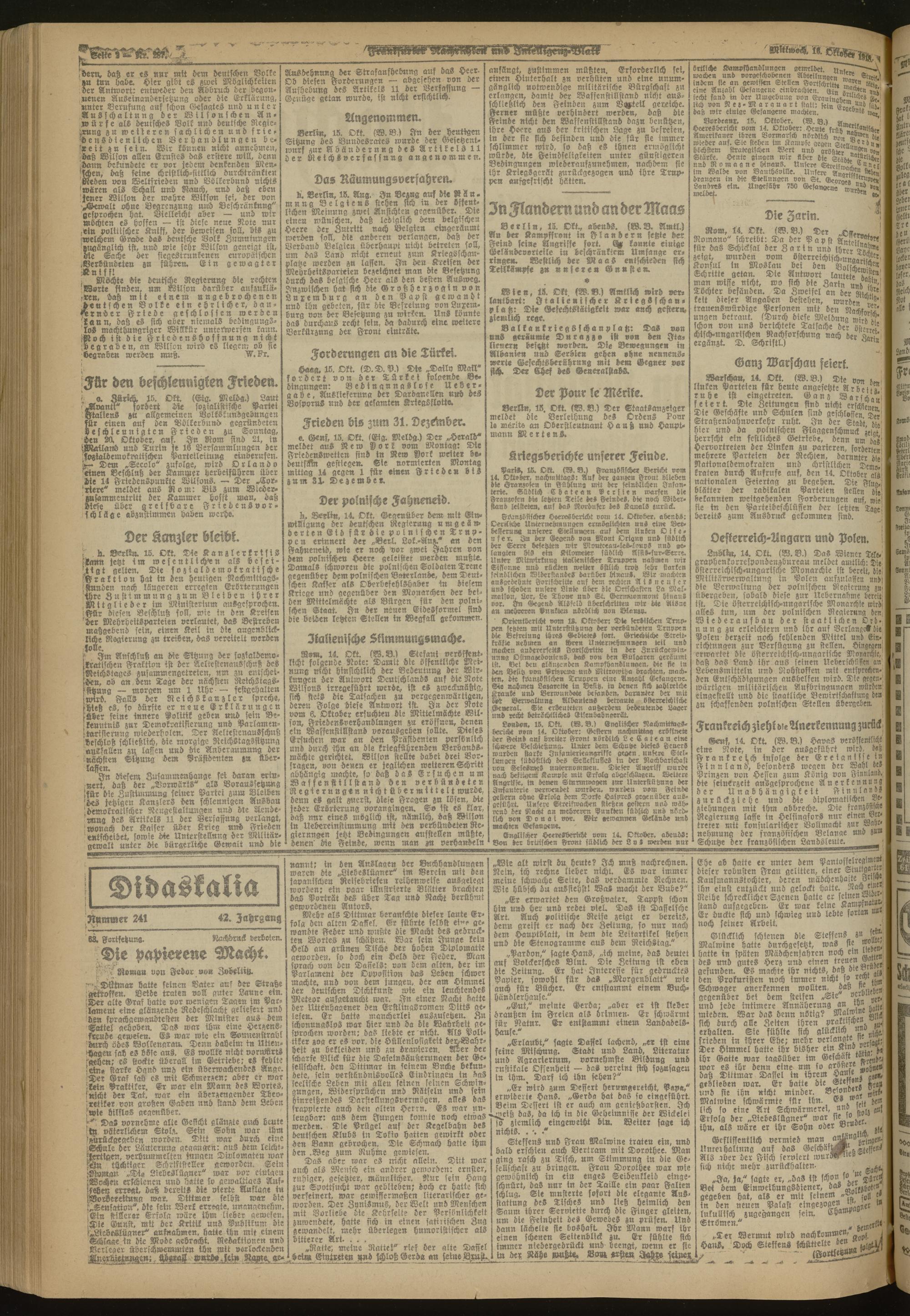 16.10.1918 Morgen-Ausgabe = Nr. 287