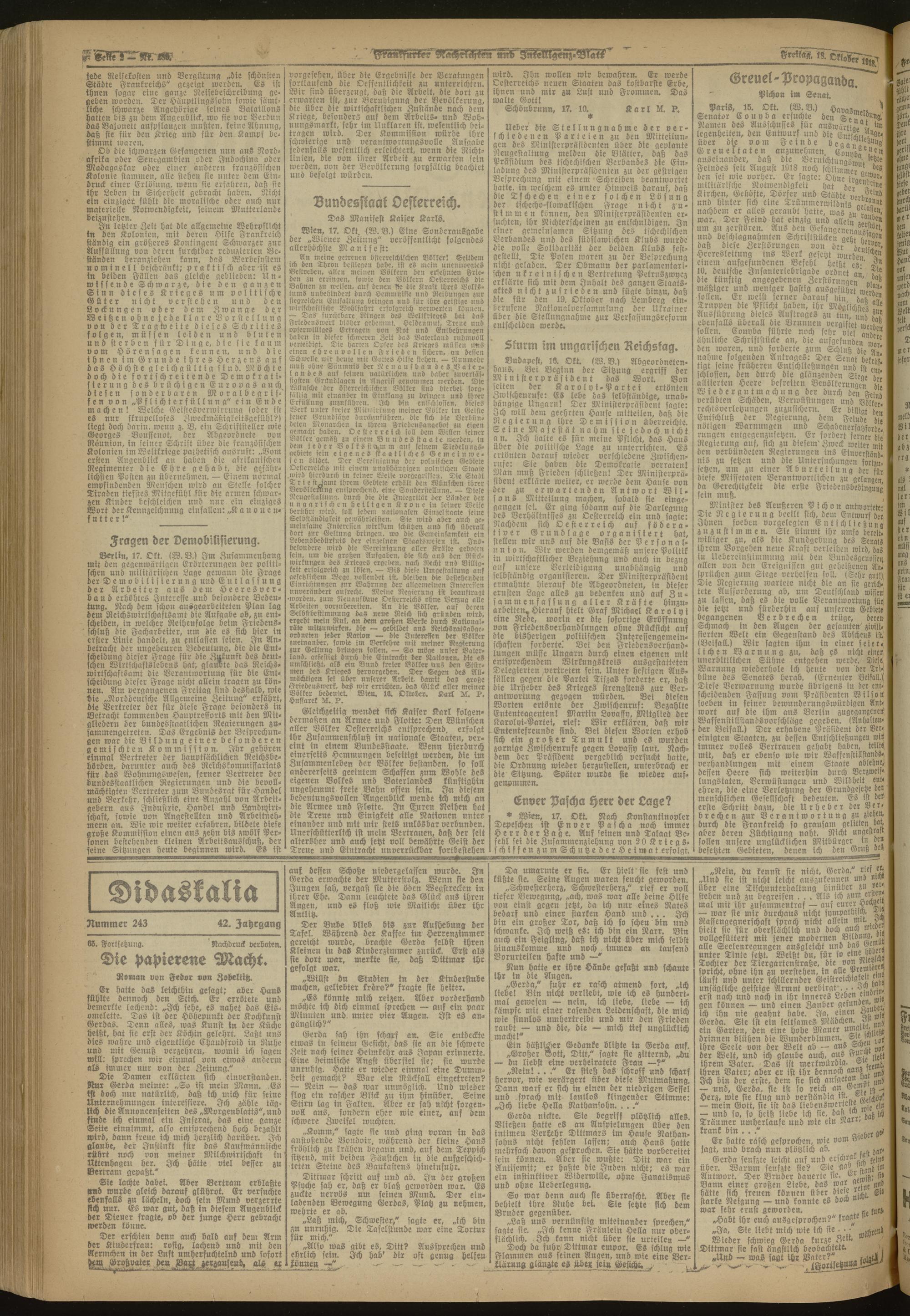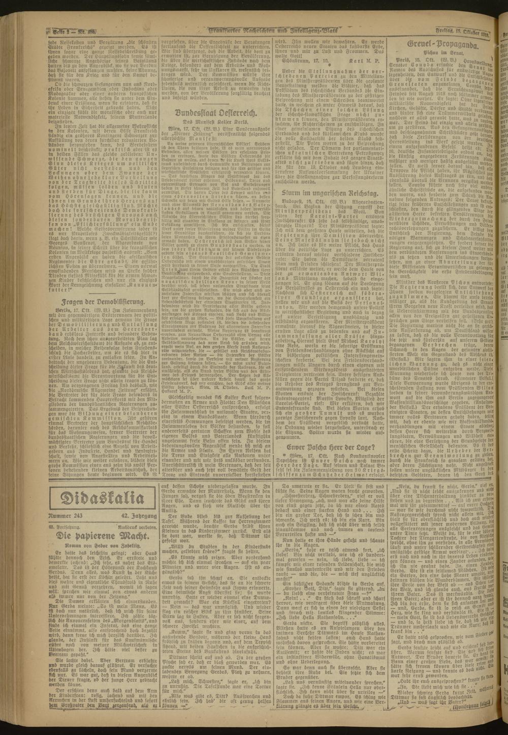 18.10.1918 Morgen-Ausgabe = Nr. 289