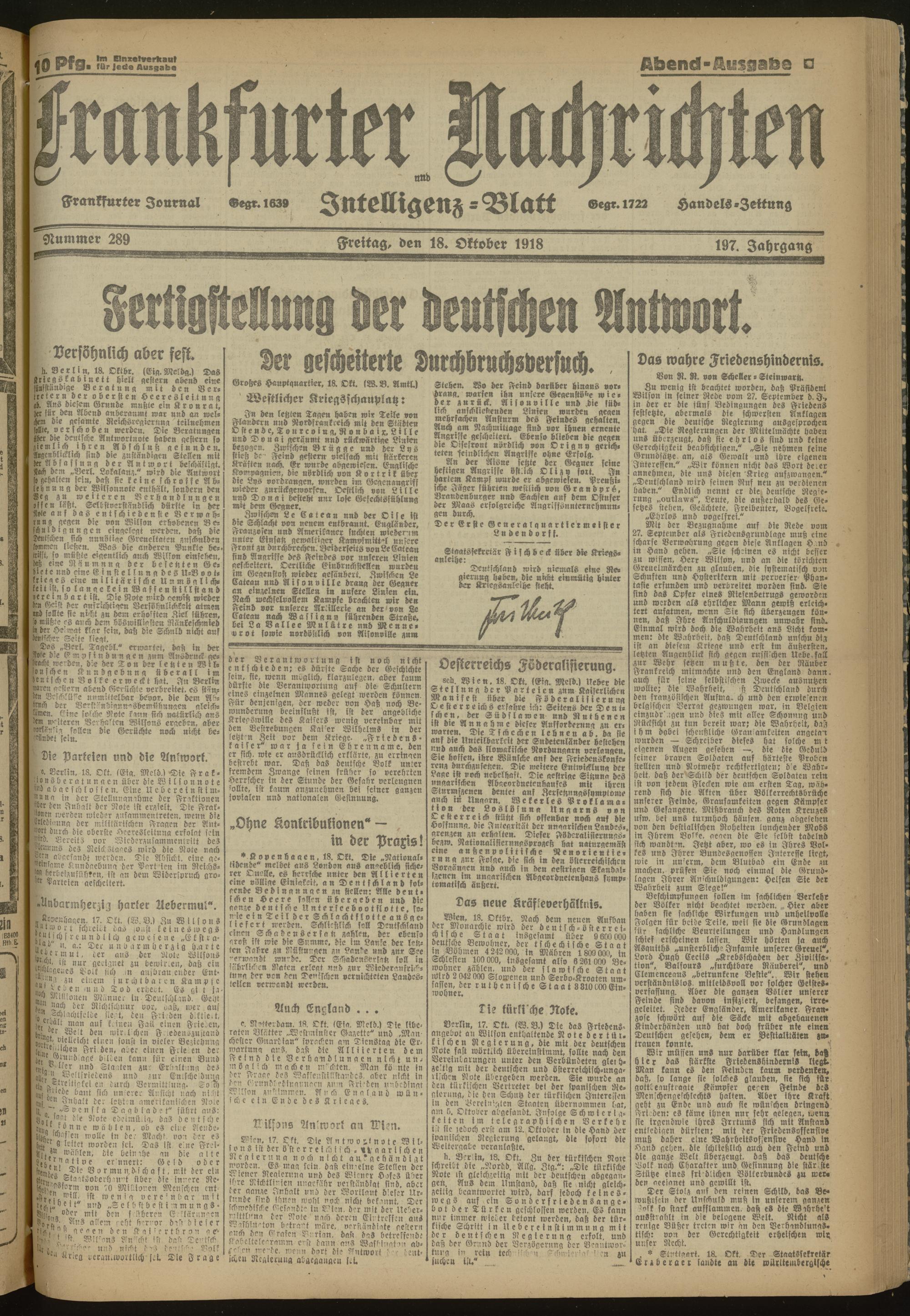 18.10.1918 Abend-Ausgabe = Nr. 289