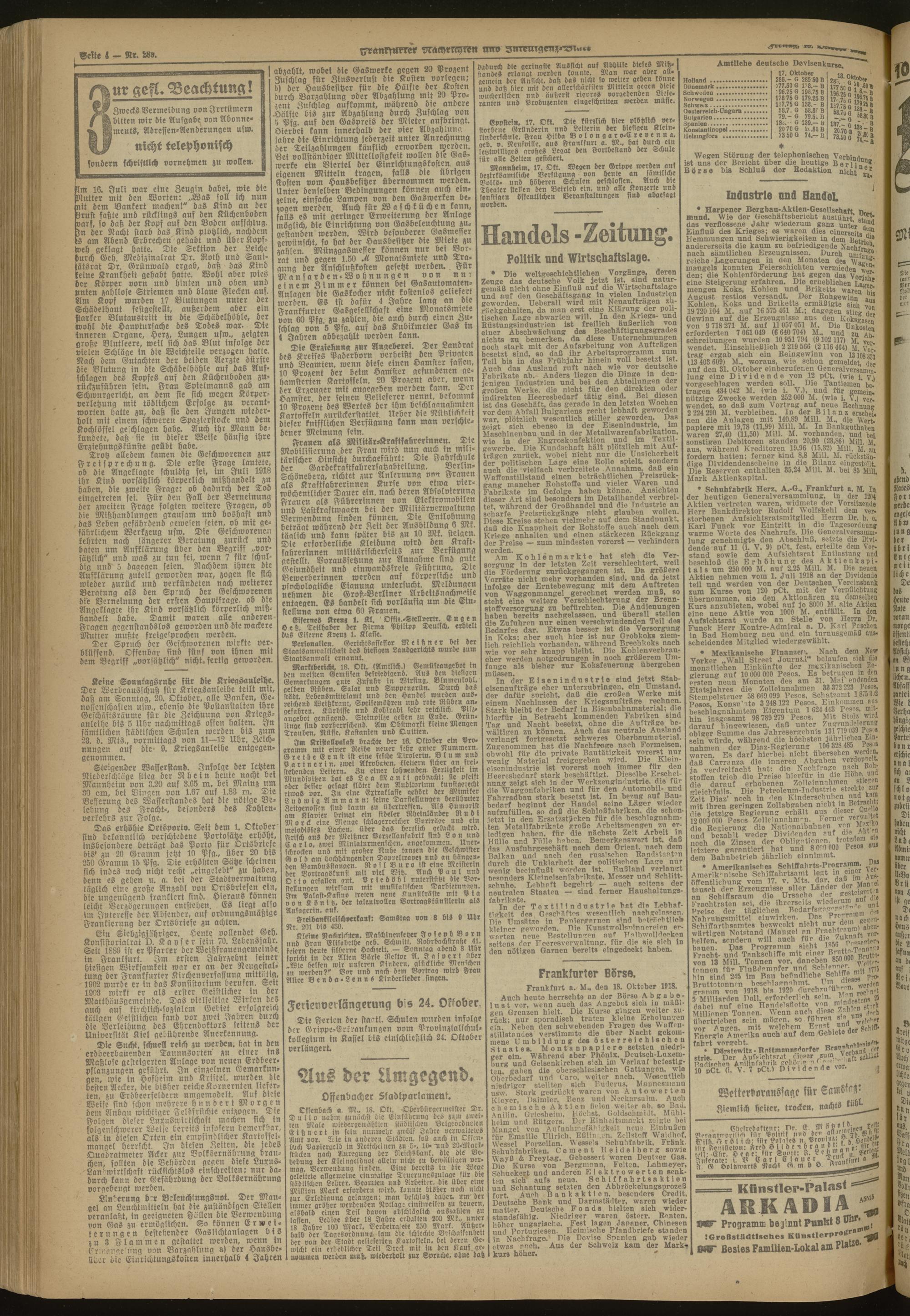 18.10.1918 Abend-Ausgabe = Nr. 289